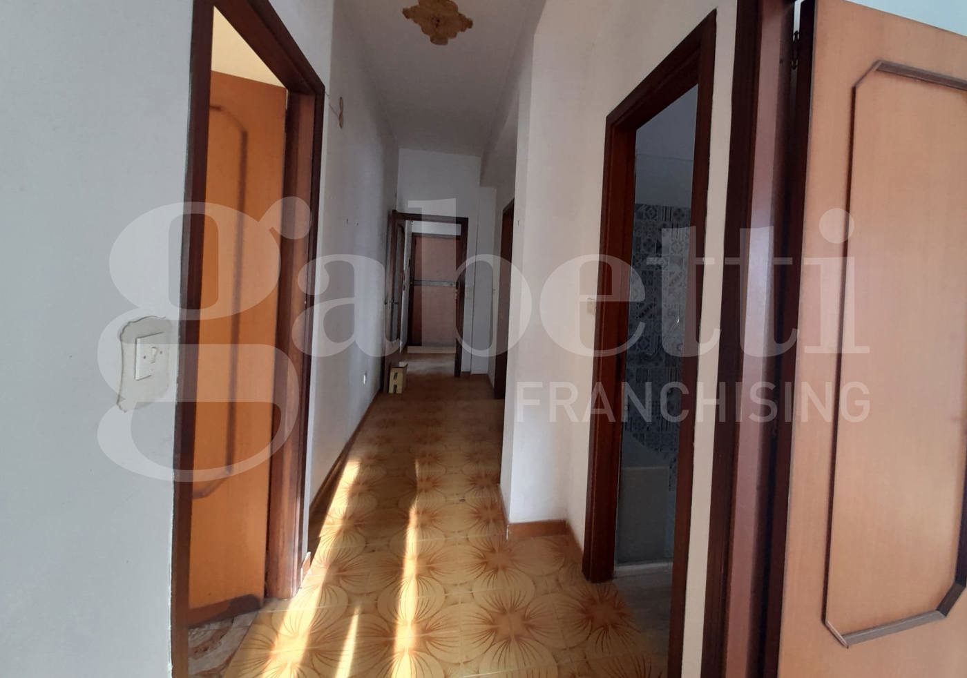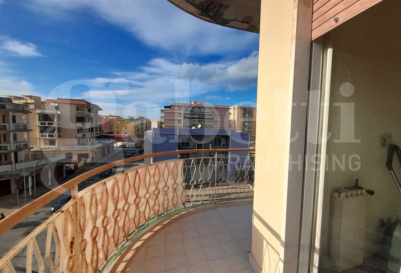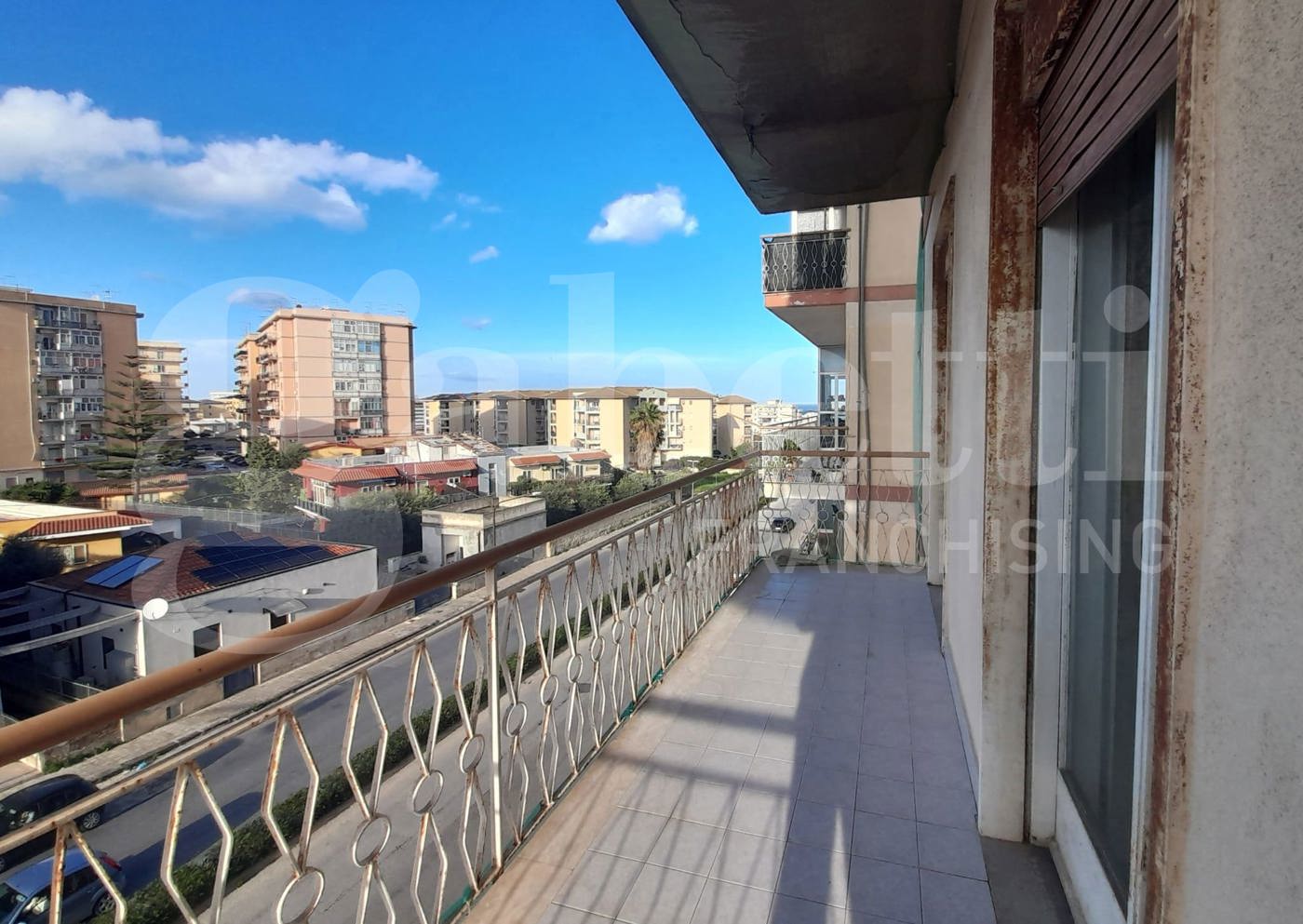 Grottasanta, Gabetti Siracusa propone in vendita, a 98.000 euro, un appartamento sito al terzo piano di un edificio di cinque piani, con ascensore e piano attico e zona recintata su tre lati (con posti auto liberi). La casa, da ristrutturare, misura 128 mq e ha cinque vani. Lappartamento ha ingresso, cucina abitabile con balcone esclusivo (dove insiste il ripostiglio esterno), salone doppio con doppio accesso al balcone esclusivo, corridoio, camera singola con balcone esclusivo, bagno principale con doccia e finestra, doppio servizio con doccia e finestra e pilozza e spazio lavatrice, seconda camera singola con balcone angolare, camera da letto matrimoniale con balcone esclusivo angolare, ripostiglio.