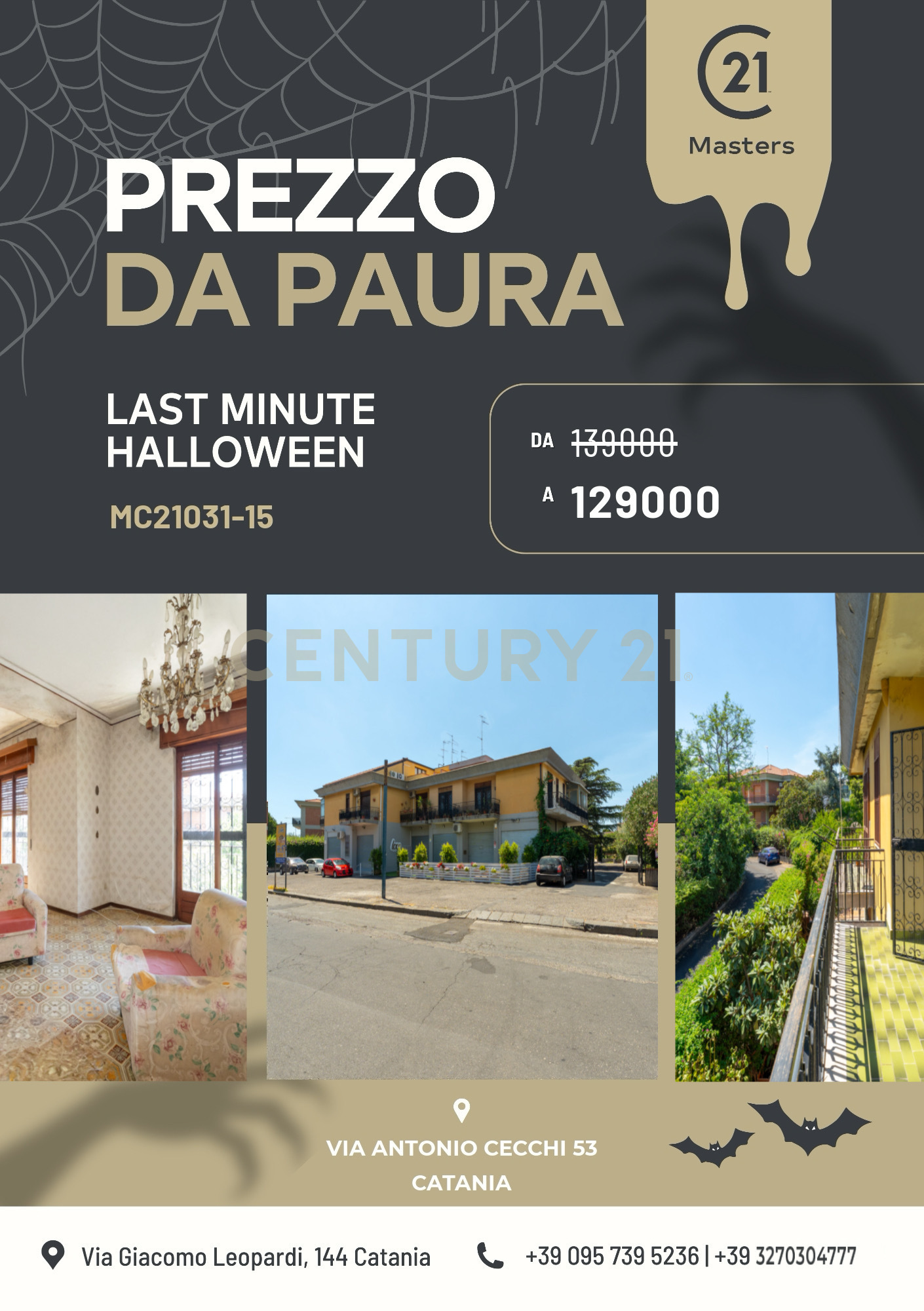 NUOVO OPEN HOUSE CON ADEGUAMENTO PREZZO DA PAURA IN OCCASIONE DELL'EVENTO 139000? 129000 ? SABATO 01/11/2025 DALLE 10 ALLE 12 Century 21 Masters propone in esclusiva un ampio appartamento di 127 mq, situato al primo piano di una palazzina in Via Antonio Cecchi, nel cuore di Catania, una zona strategica e altamente richiesta, caratterizzata dalla vicinanza ai principali servizi, scuole, attività commerciali e ottimi collegamenti con il centro città. Limmobile si distingue per la sua ampia metratura e la distribuzione degli spazi, ideale sia come abitazione principale sia come investimento: Doppio soggiorno luminoso, perfetto per accogliere ospiti o creare una zona living elegante e confortevole; Due camere da letto ben dimensionate; Cucina funzionale, Un bagno.