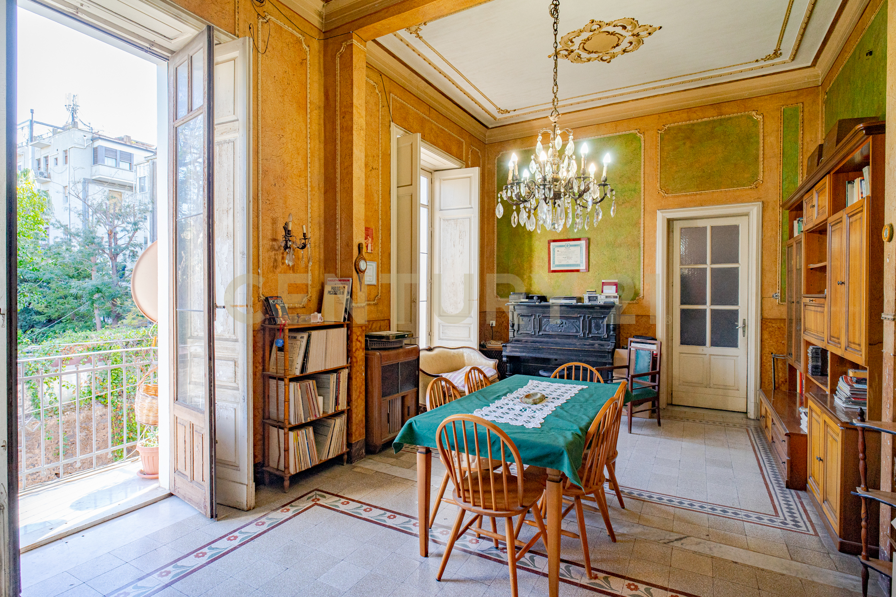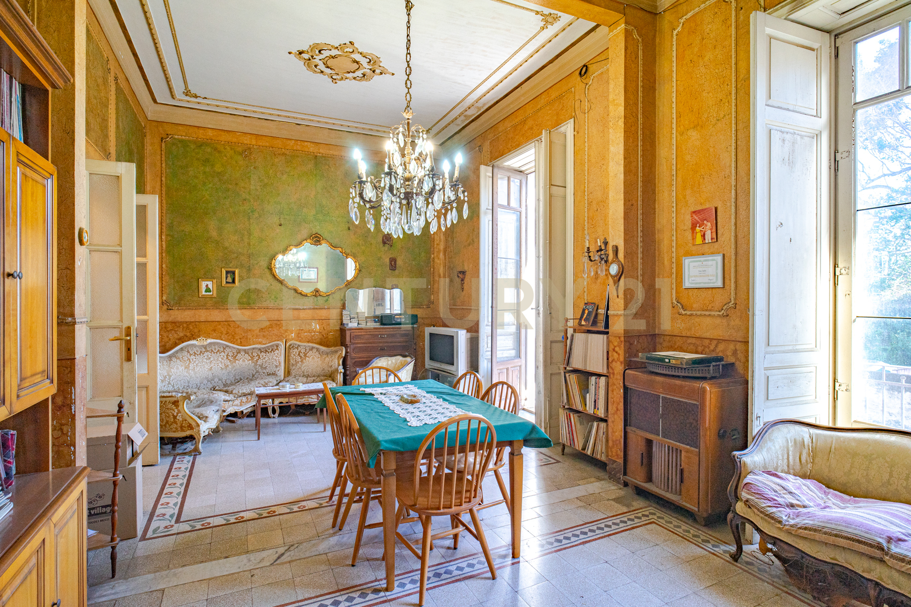 L'immobile al suo interno ha una superficie generosa di oltre 180 mq dove si ha accesso all'ampio salone di oltre due vani, vano studio, ulteriori due camere da letto, cucina semi abitabile e servizio di rappresentanza.