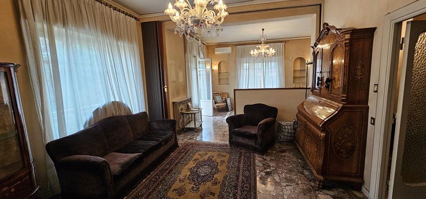 Il salone doppio, luminoso e rappresentativo, dialoga con la sala da pranzo creando uno spazio ideale per momenti di convivialità e accoglienza.