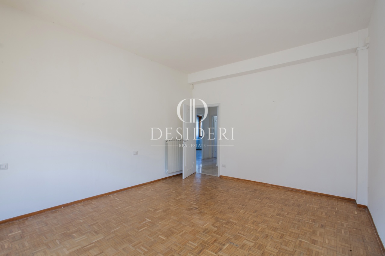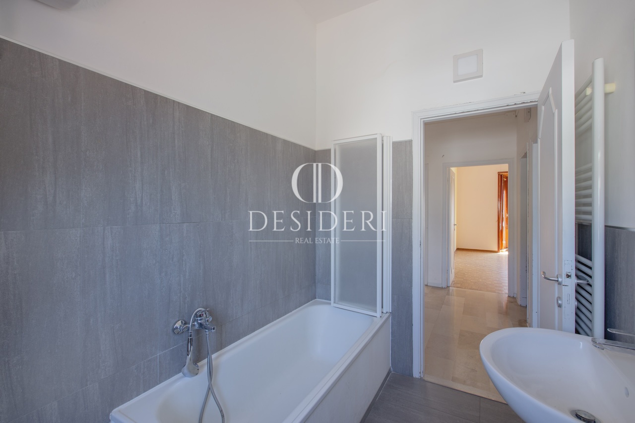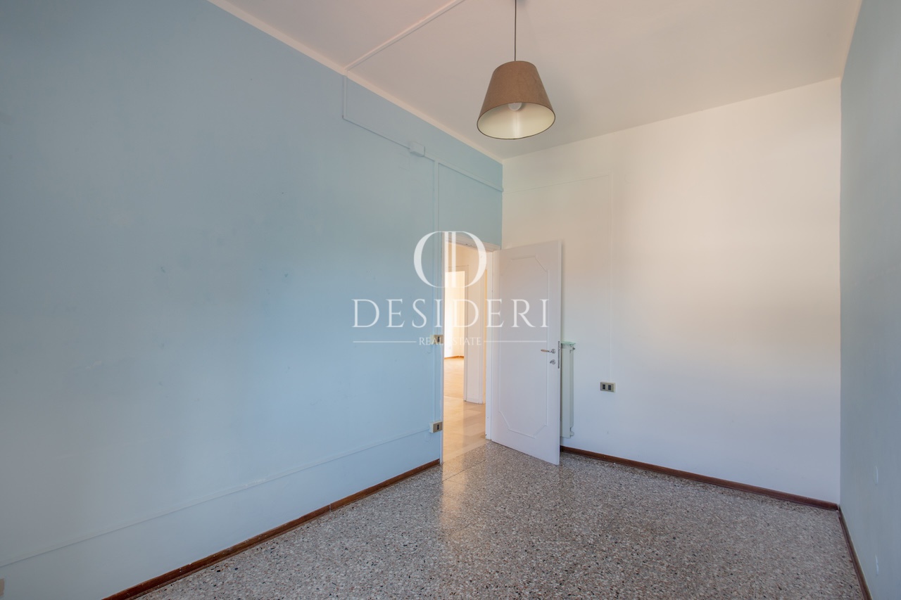 Posto al terzo piano, gode di un'ottima luminosità grazie alla doppia esposizione e segue una pianta regolare: ingresso elegante conduce al salotto, cucina abitabile con balcone; la restante parte della casa ospita la zona notte con tre camere da letto, un bagno e un ripostiglio.