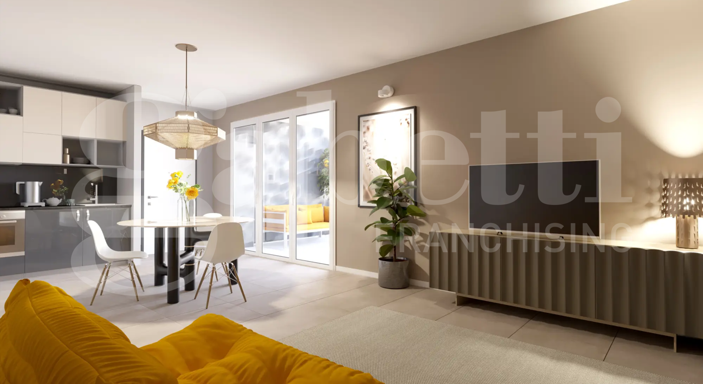 Le tipologie poste al piano terra presentano giardini esclusivi mentre quelle ai piani superiori sono caratterizzate dalla presenza di un ampio terrazzo, vera e propria estensione all'aperto dell'appartamento, per una vivibilit in continuit con gli spazi living.