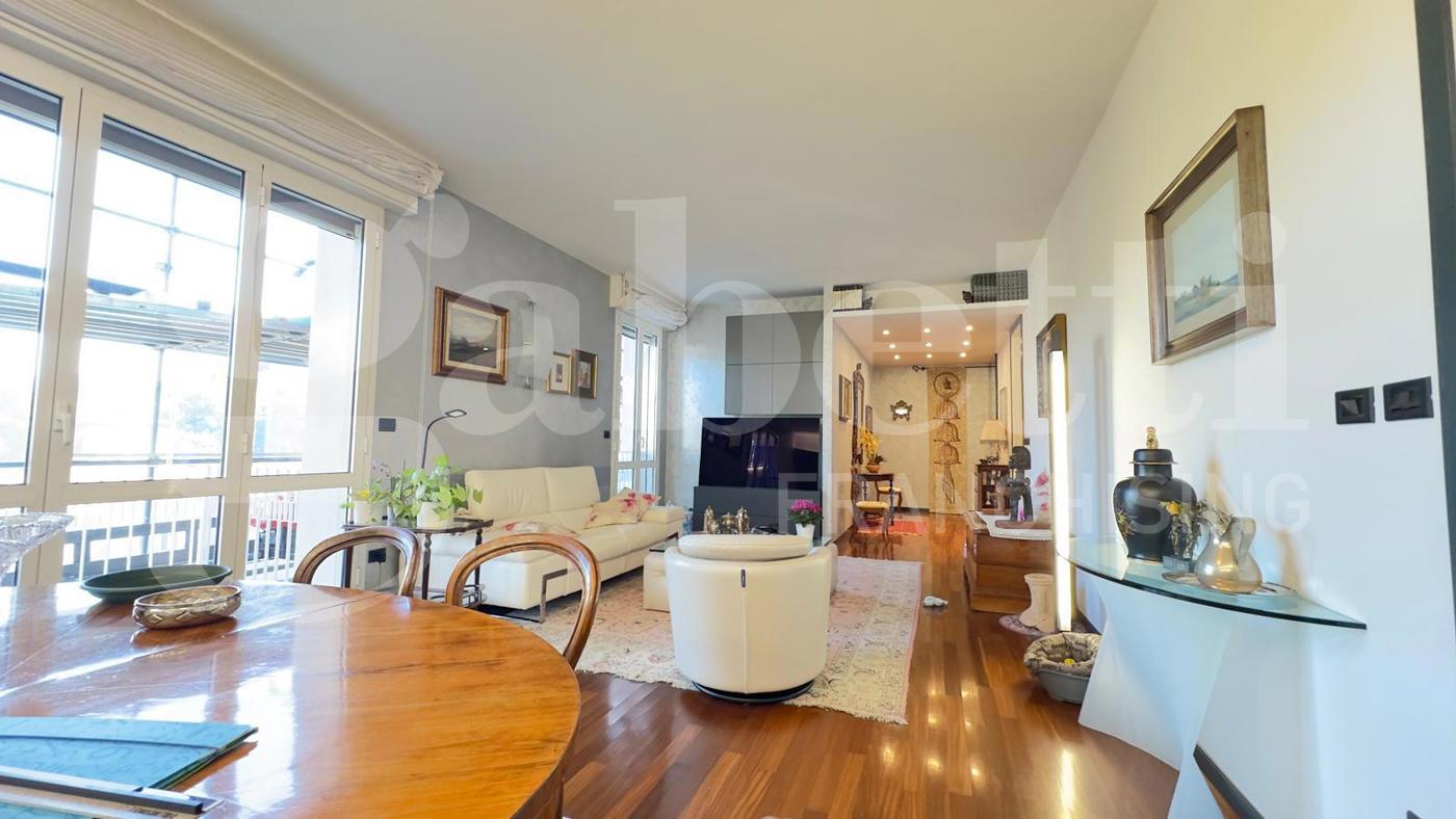 L'immobile gode di una grande luminosit per la sua tripla esposizione e presenta una distribuzione degli spazi estremamente funzionale ideale per accogliere comodamente una famiglia numerosa e si compone di: ampio ingresso che conduce direttamente all'area giorno, salone doppio luminoso e panoramico di 35 mq dotato di ampia vetrate, cucina abitabile, quattro vani letto/studio attualmente distribuiti come - due camere da letto, uno studio, una camera guardaroba o singola - due bagni, ripostiglio e due balconi.