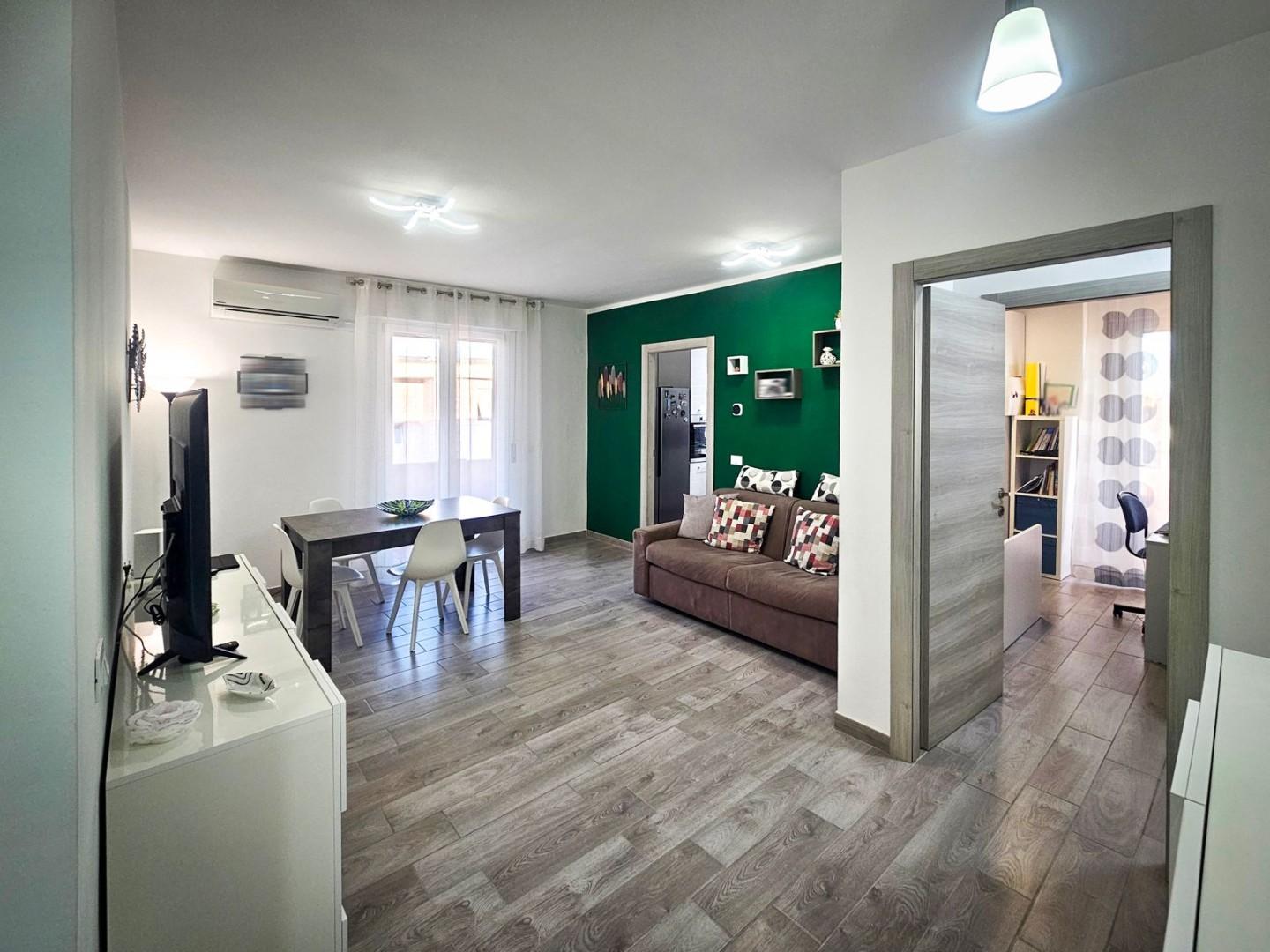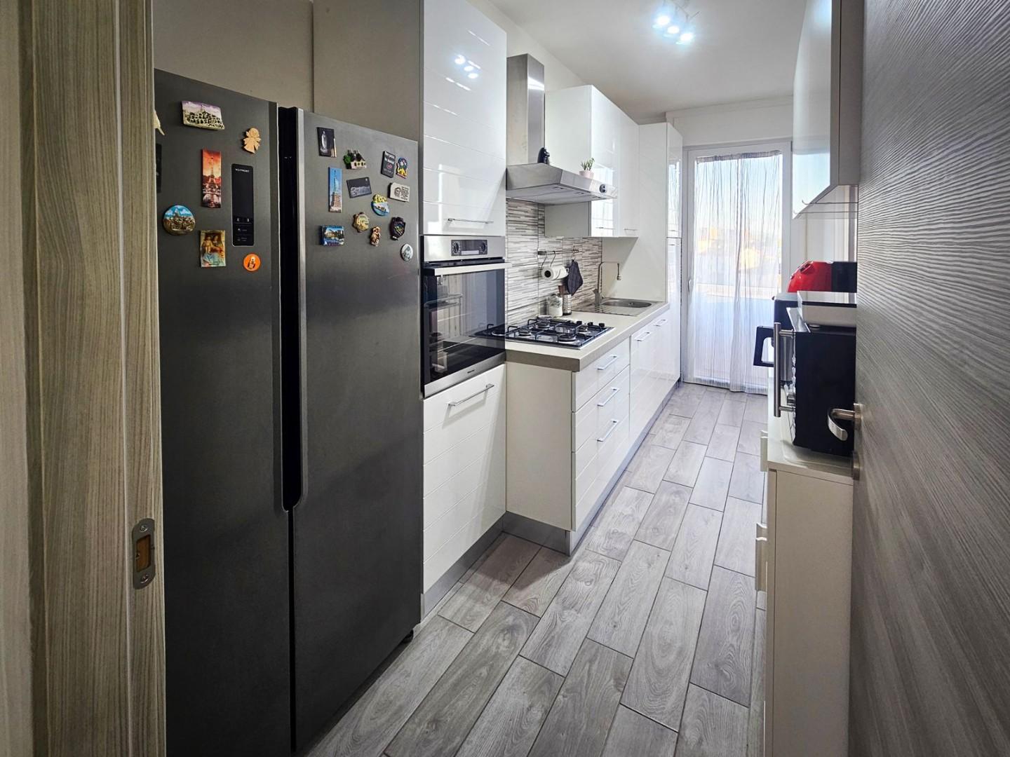 Si caratterizza per la notevole luminosità essendo libero su tre lati con balconi in ogni stanza e si compone di Ingresso arredabile, soggiorno/pranzo con ampio balcone, cucinotto con balcone e ripostiglio/lavanderia, disimpegno notte, bagno con balcone, 2 camere di cui una con balcone e studio attualmente utilizzato come cameretta con balcone.