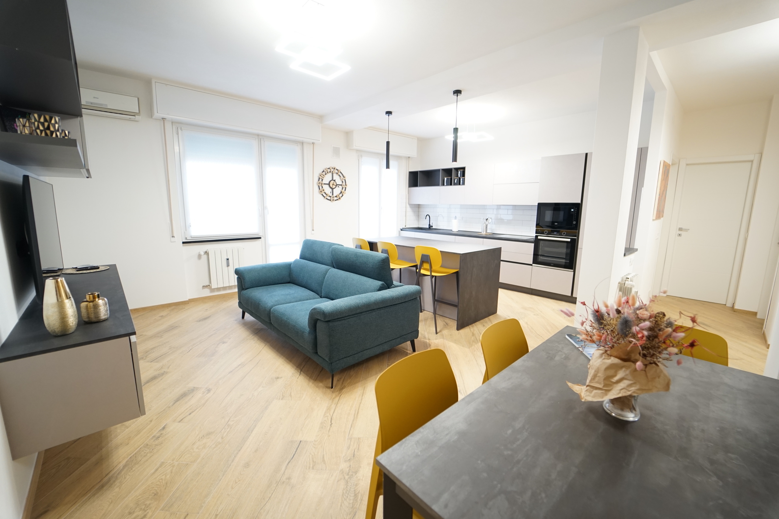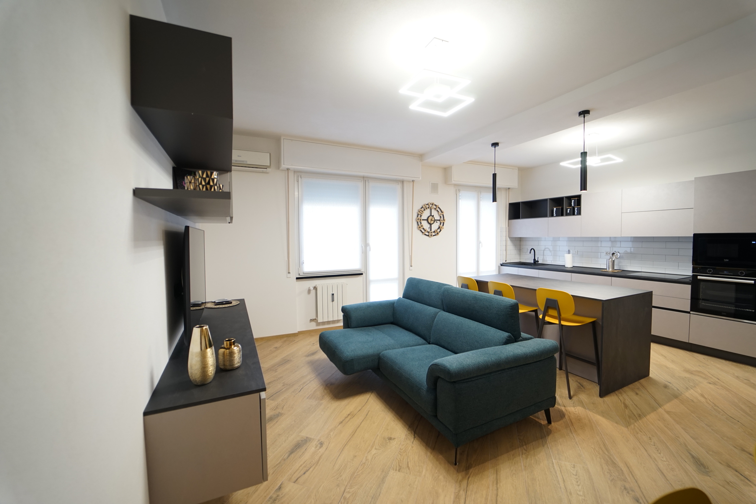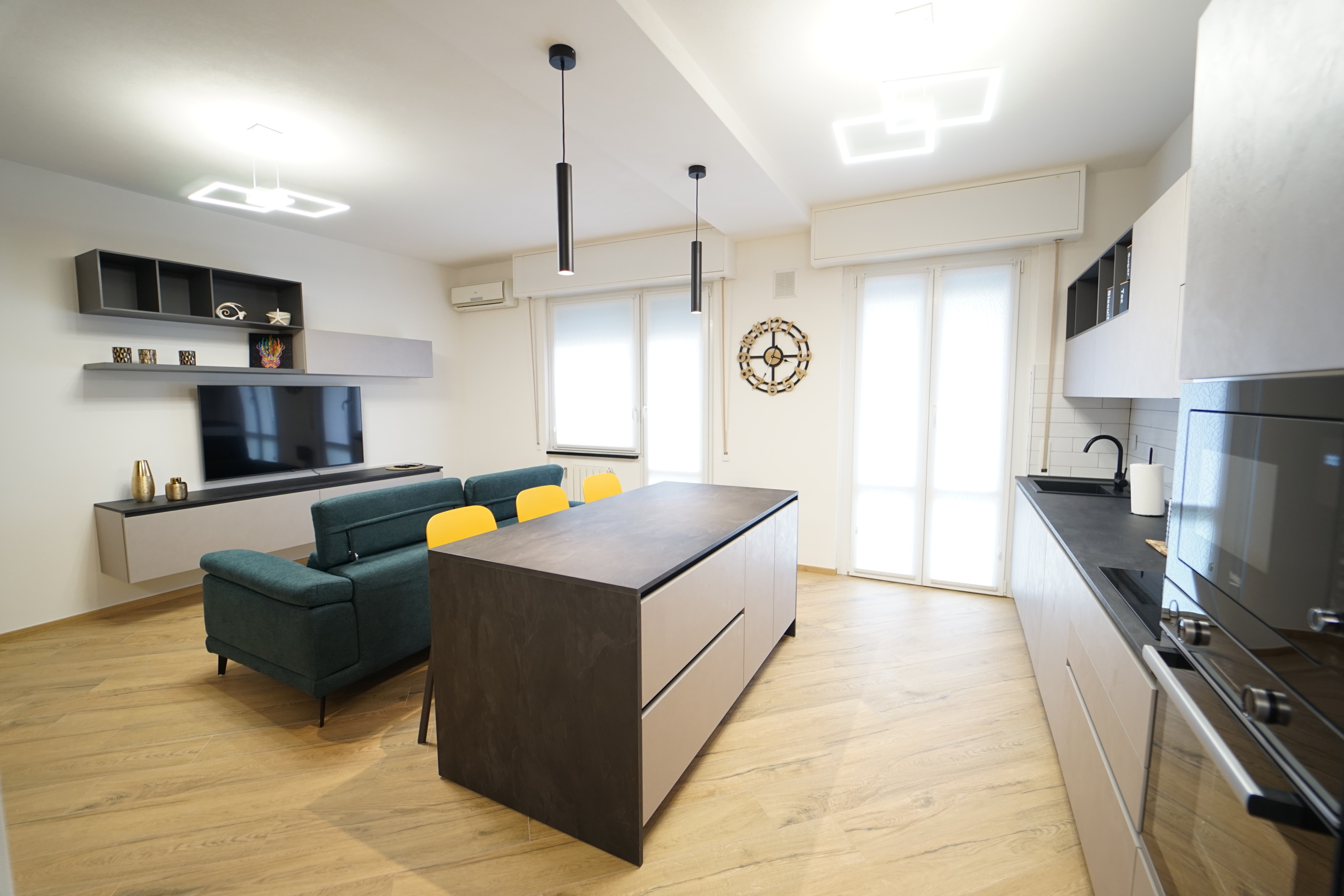 L'immobile viene locato arredato finemente, con mobilio moderno e raffinato, fornito di ogni comfort, ed così composto: ingresso, ampio soggiorno open space con cucina a vista (dotata di piano ad induzione, forno e microonde, lavastoviglie, lavatrice), due ampie camere da letto matrimoniali, comodo ripostiglio e servizio con box doccia.