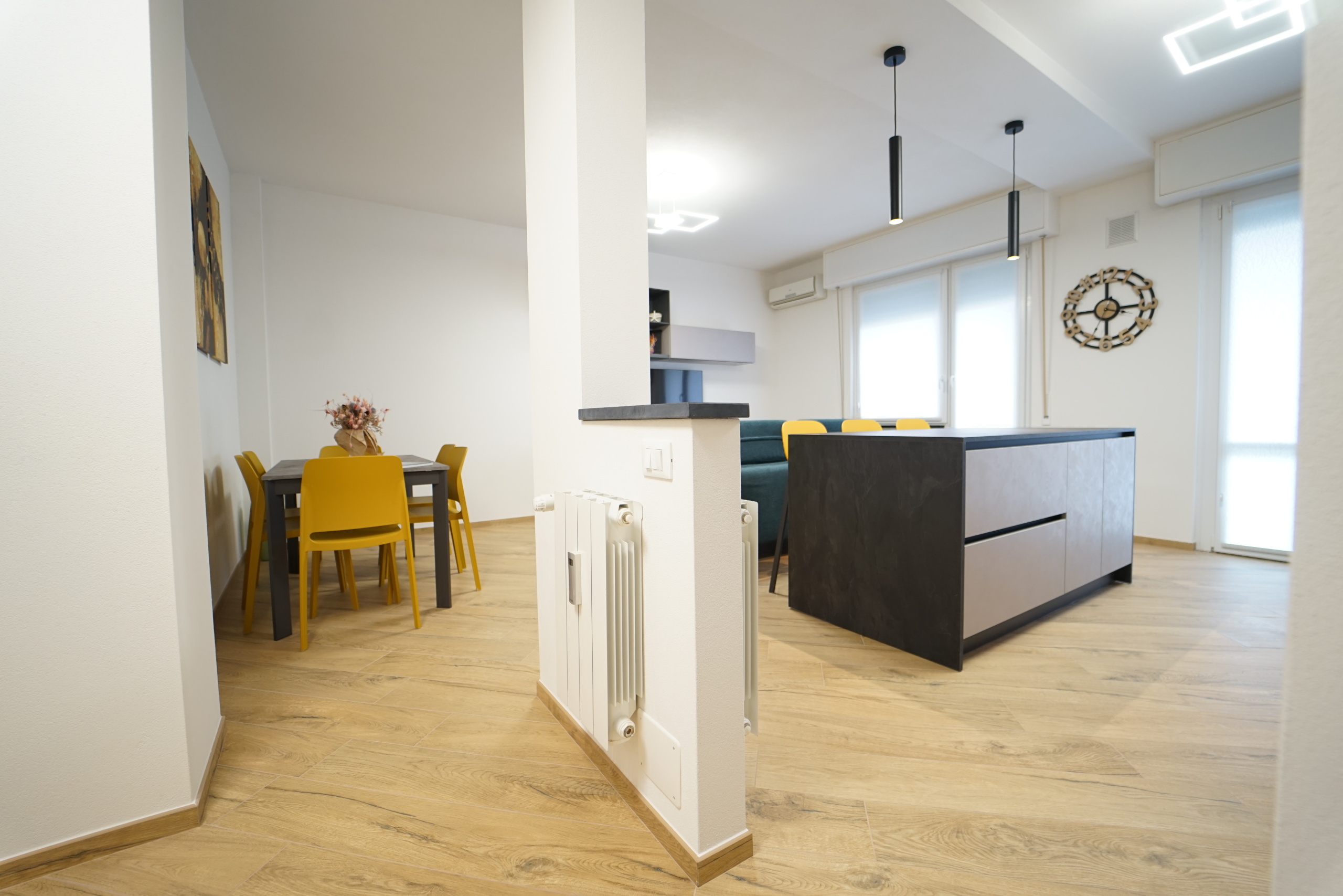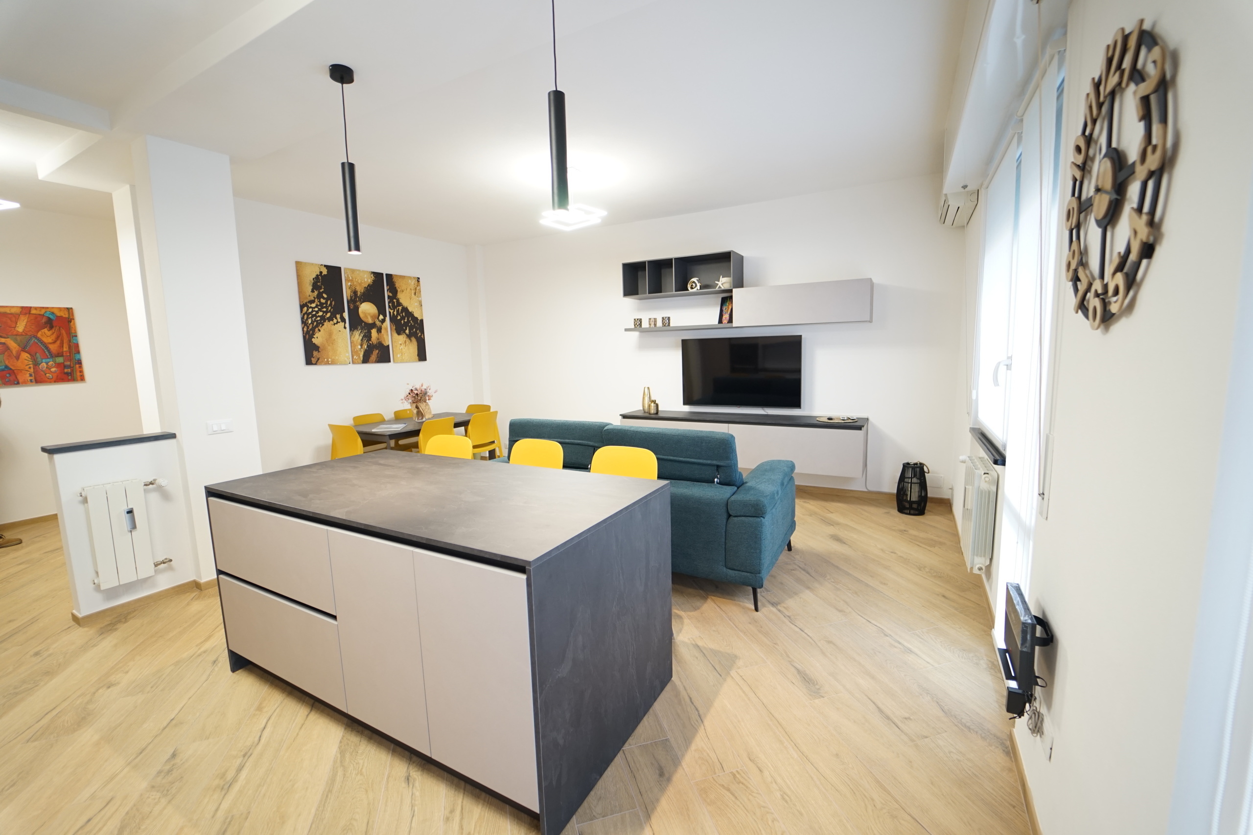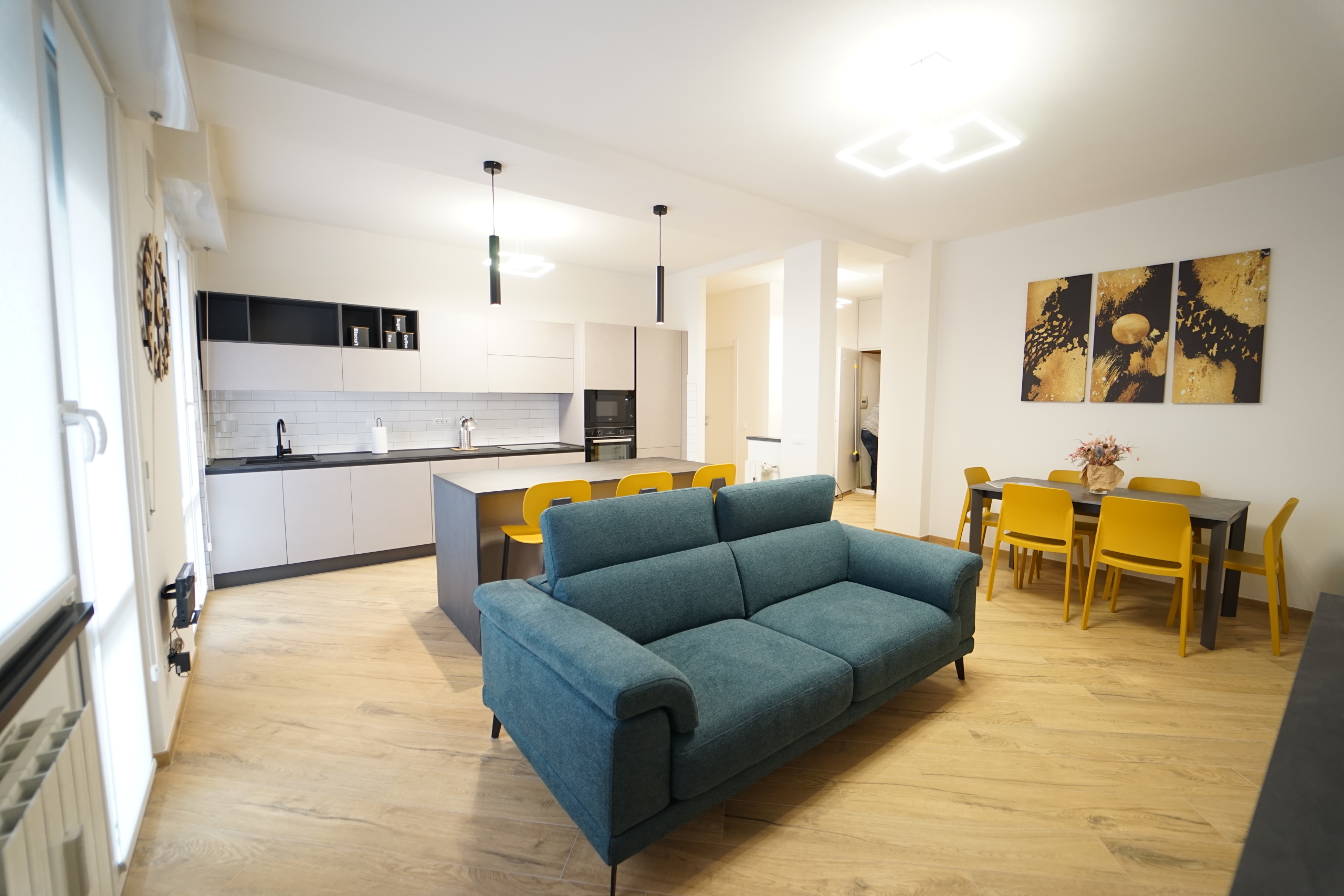 L'immobile viene locato arredato finemente, con mobilio moderno e raffinato, fornito di ogni comfort, ed così composto: ingresso, ampio soggiorno open space con cucina a vista (dotata di piano ad induzione, forno e microonde, lavastoviglie, lavatrice), due ampie camere da letto matrimoniali, comodo ripostiglio e servizio con box doccia.