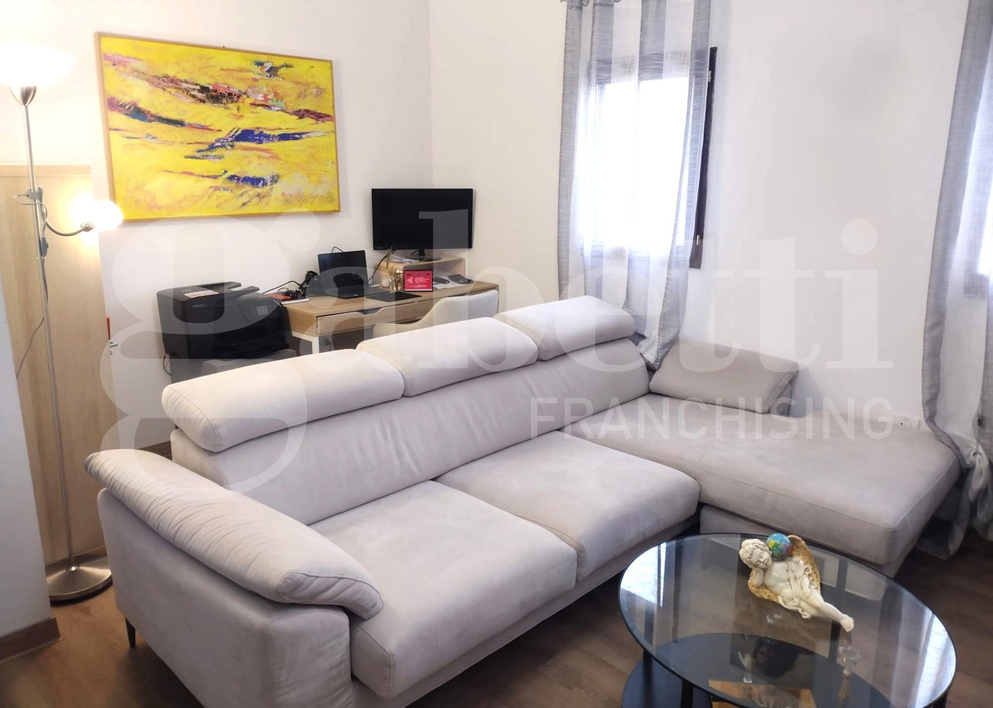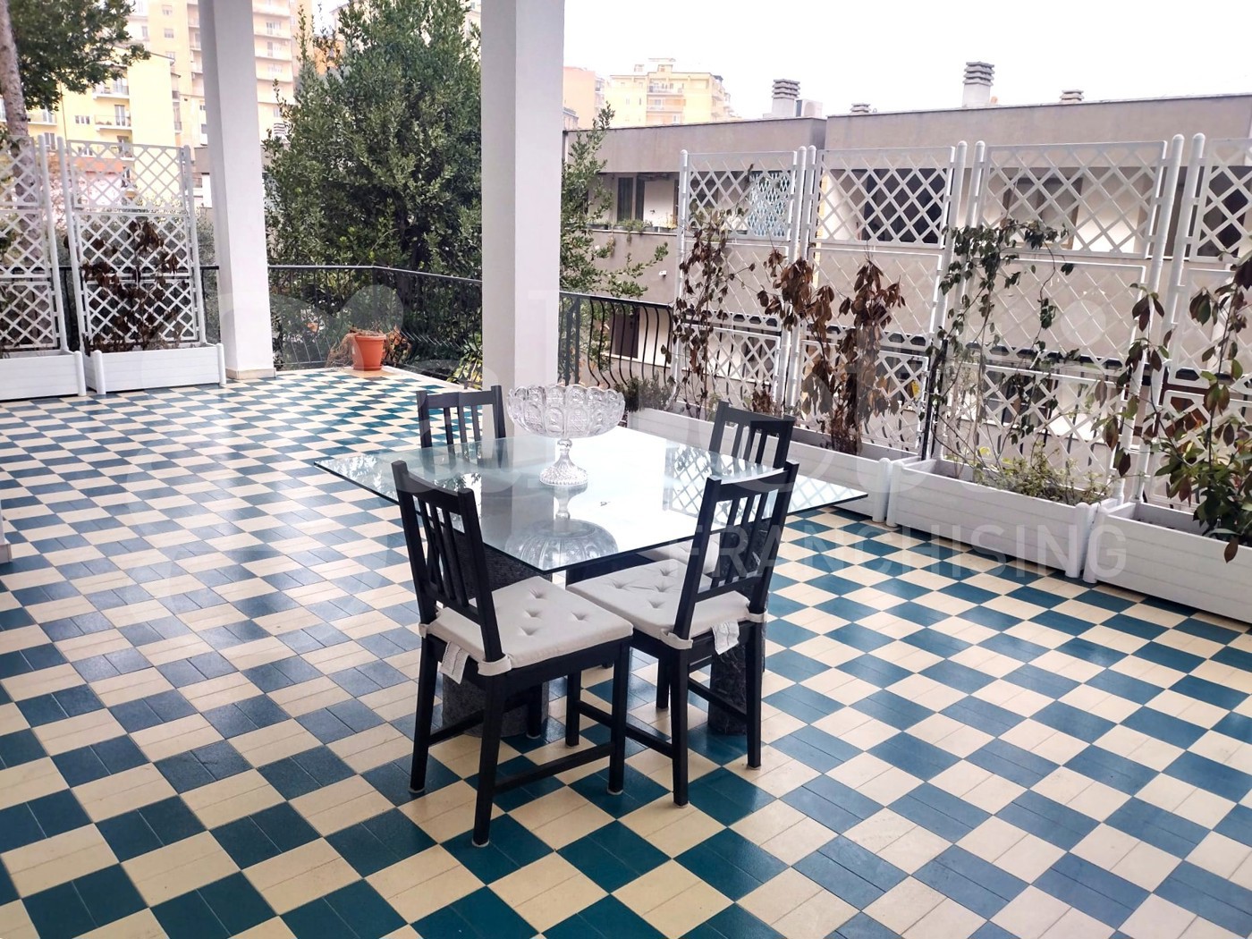 Un grande terrazzo coperto valorizza tutto l'appartamento.