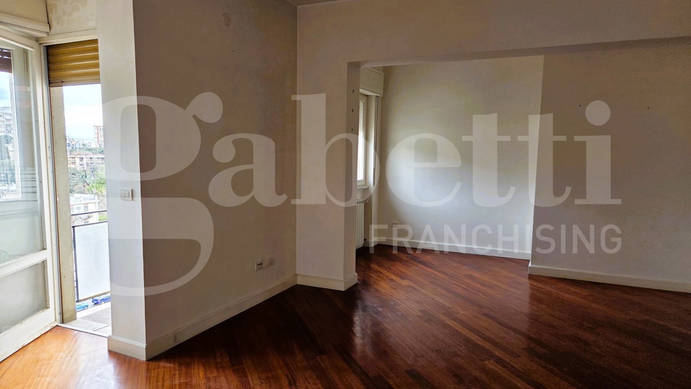 L'ingresso si apre su un grande salone triplo con esposizione su un balcone panoramico, che da sicuramente luce e aria alla stanza pi importante della casa; le camere da letto sono due ed una di queste arricchita dalla comodit di una cabina armadio; i bagni sono due ed entrambi finestrati, la cucina semi abitabile e dotata di un secondo balcone di servizio.