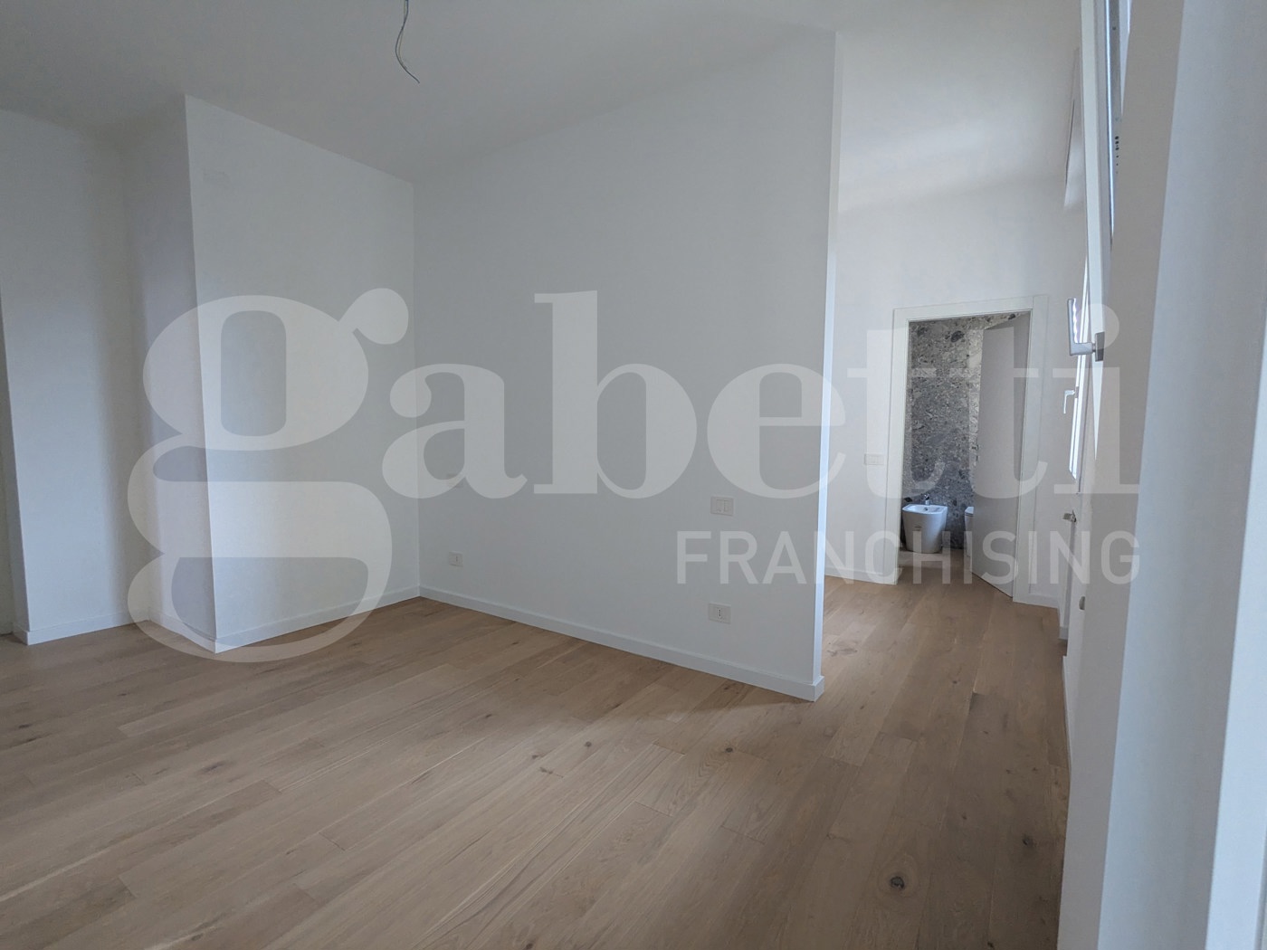 Lappartamento cos composto: doppio salone con cucina a vista e due balconi uno dei quali affaccia su Largo Garibaldi, vanta di una vista unica sulla fontana del Graziosi con sfondo la Ghirlandina; una camera singola, una camera doppia e una camera matrimoniale con balcone, cabina armadi e bagno; ulteriore bagno completa lappartamento.