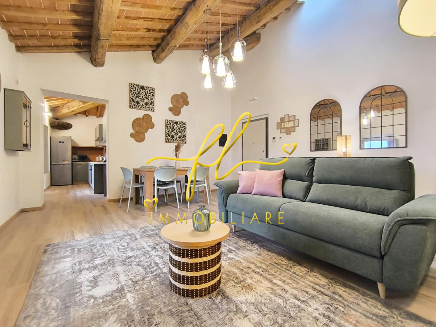 La residenza coniuga il fascino dellarchitettura toscana con il comfort contemporaneo: travi lignee a vista, altezze importanti e ambienti luminosi dialogano armoniosamente con una ristrutturazione attenta e di qualità. L'ingresso introduce all'ampia zona living con soggiorno e sala da pranzo finestrata; la cucina è separata e funzionale.
