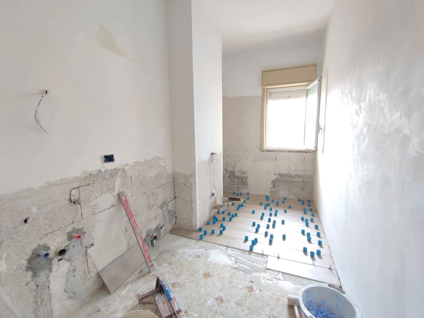 L'appartamento verr consegnato completamente ristrutturato, con pavimenti in grs porcellanato, impianto idrico ed elettrico, riscaldamento autonomo con piastre a muro e predisposizione per pompe di calore.