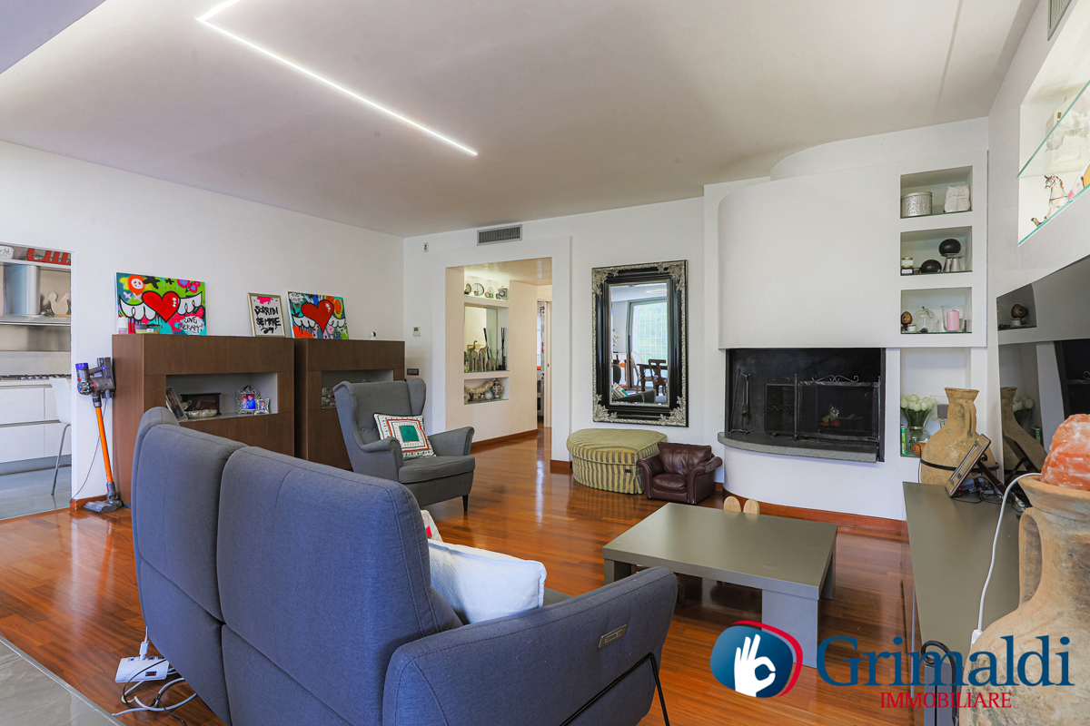 L'appartamento, di generosa metratura, composto da un ampio ingresso, salone doppio con camino, cucina abitabile, 4 camere da letto, doppi servizi, di cui uno en suite con vasca idromassaggio, tre balconi e un ampio terrazzo.