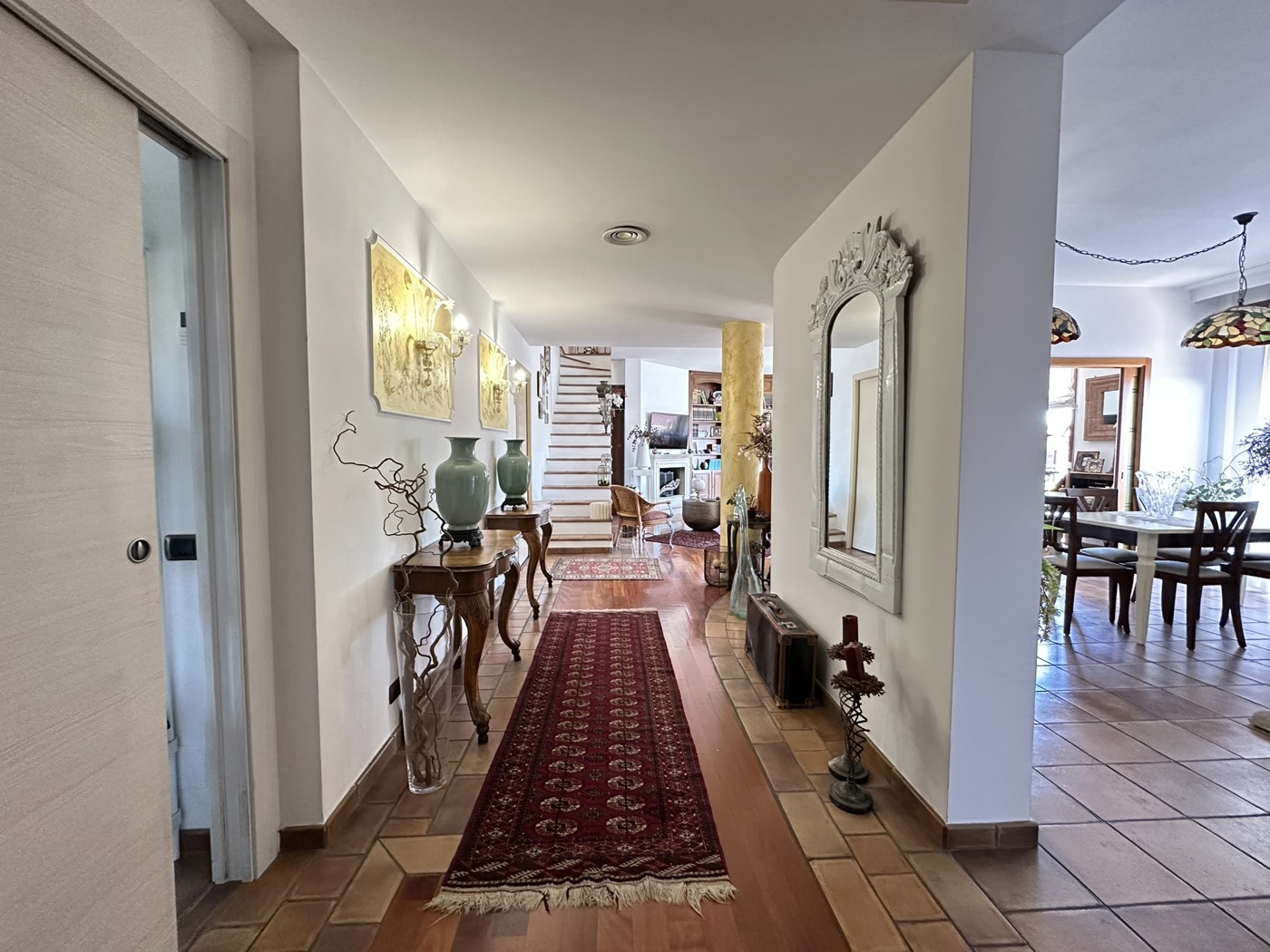 Al piano primo troviamo un accogliente ingresso che ci conduce al salone doppio, cucina abitabile, sala da pranzo, due camere da letto, cameretta, servizio, ampio terrazzo panoramico e balcone.