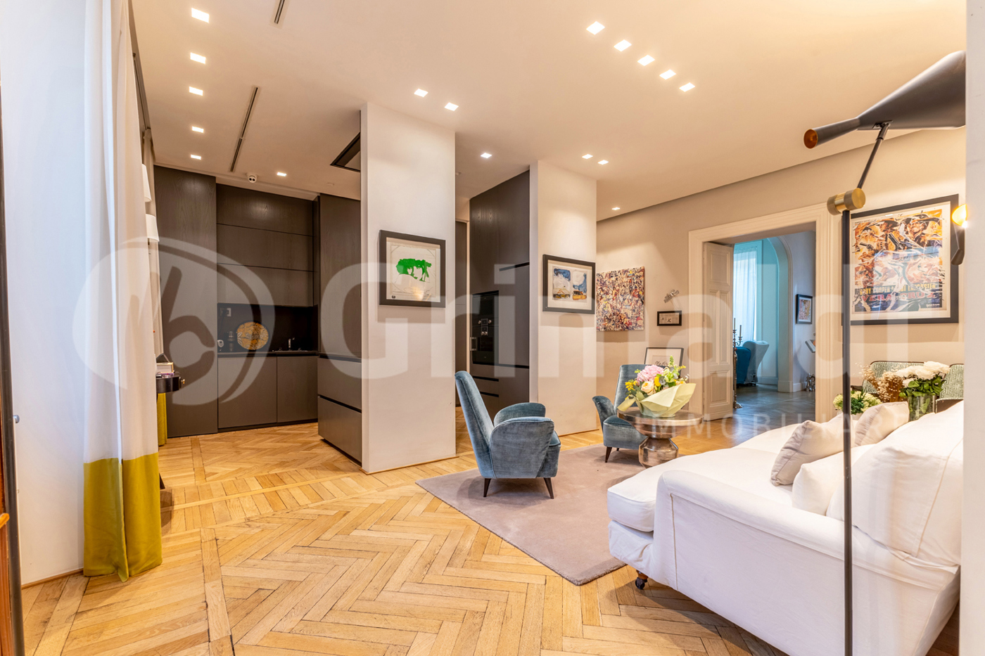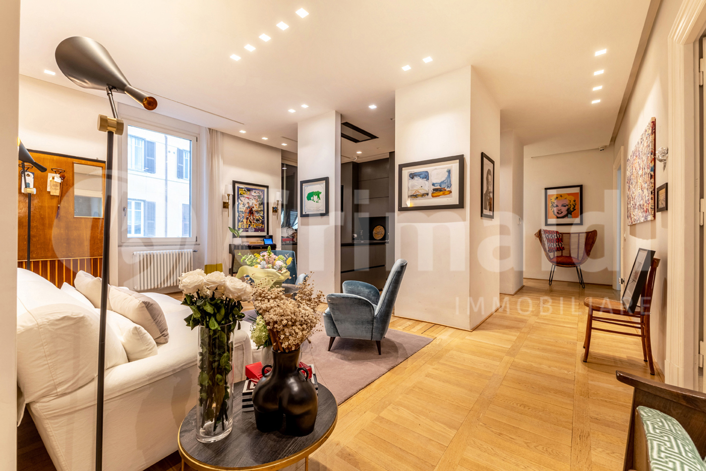L'immobile, ristrutturato, composto da: ingresso, soggiorno triplo, sala pranzo con cucina a vista, una camera da letto con cabina armadio e bagno privato, cameretta/studio, altro bagno.