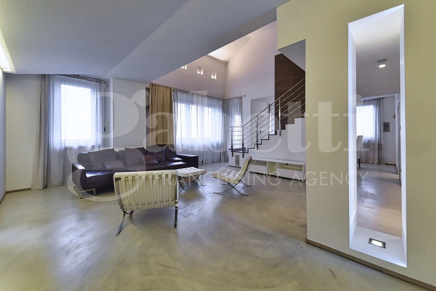 La propriet arricchita dalla sovrastante mansarda composta da un soppalco in aggetto sul salone, attraverso il quale si accede allo STUDIOLO con ripostiglio e pareti attrezzate ad armadiatura e ad una suggestiva SALA CINEMA.
