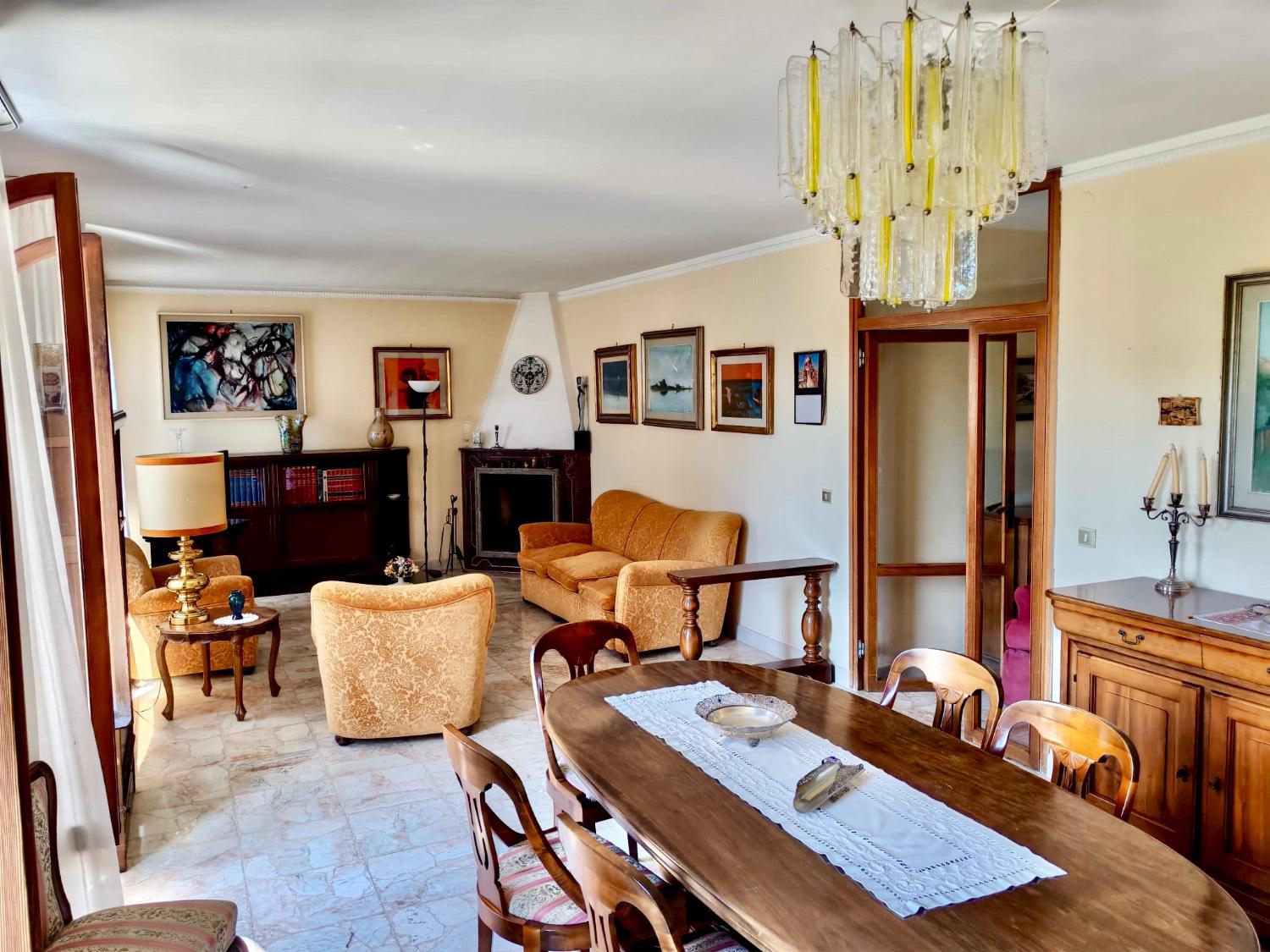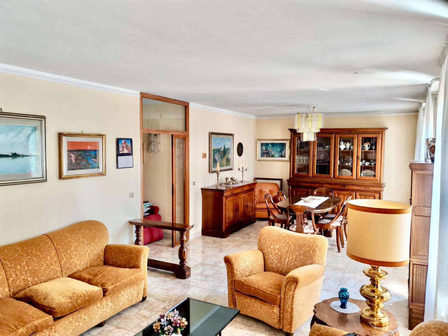 Labitazione si apre su un comodo ingresso e prosegue con un ampio e luminosissimo soggiorno con zona pranzo, una cucina abitabile, due camere matrimoniali, una camera singola con poggiolo, due bagni spaziosi e finestrati e un pratico ripostiglio.
