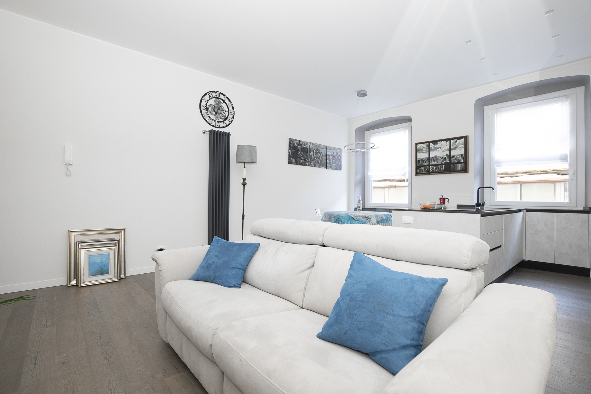 Entrando troviamo subito l'ampia zona giorno composta da soggiorno e cucina open concept, impreziosita con arredo su misura completa di elettrodomestici e cappa integrata nella penisola; proseguendo troviamo la prima camera da letto matrimoniale con preziosa cabina armadio e bagno en suite completo; la casa ha altre due camere da letto matrimoniali, un secondo bagno completo ed un comodo vano ripostiglio lavanderia.