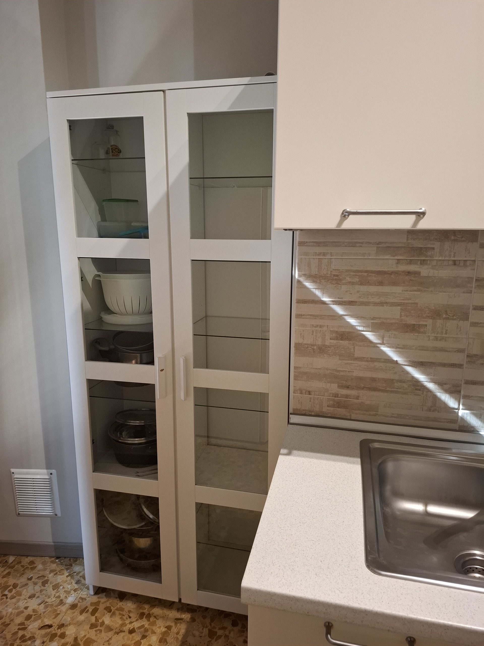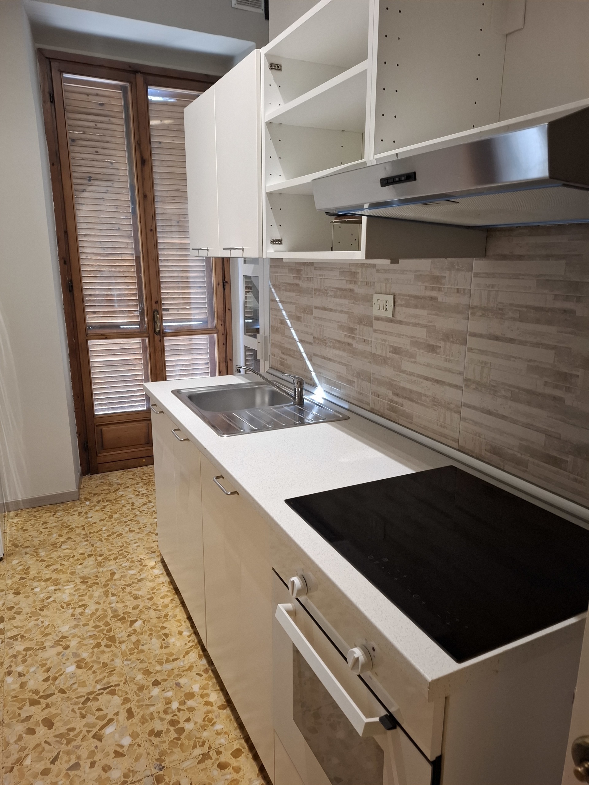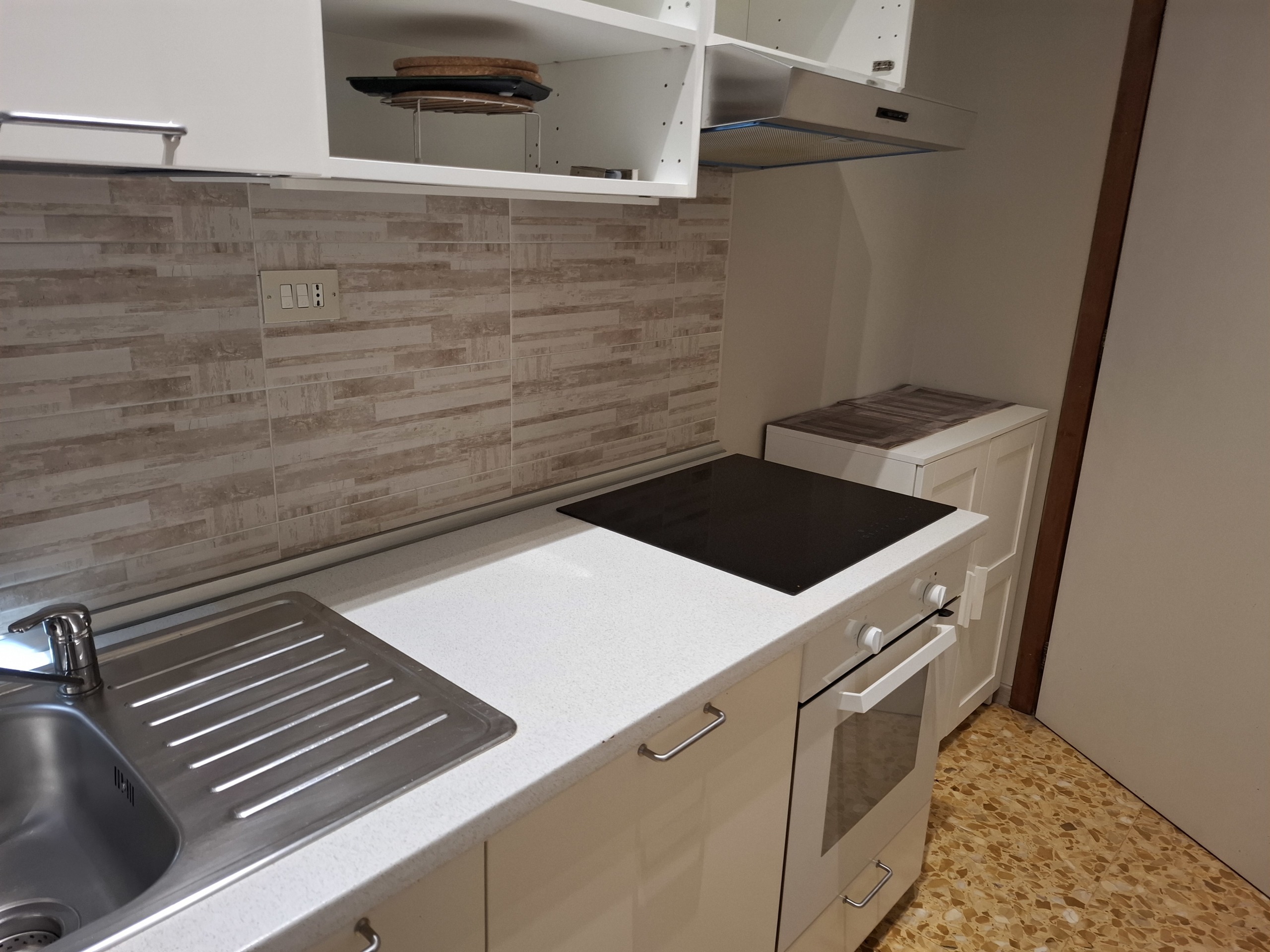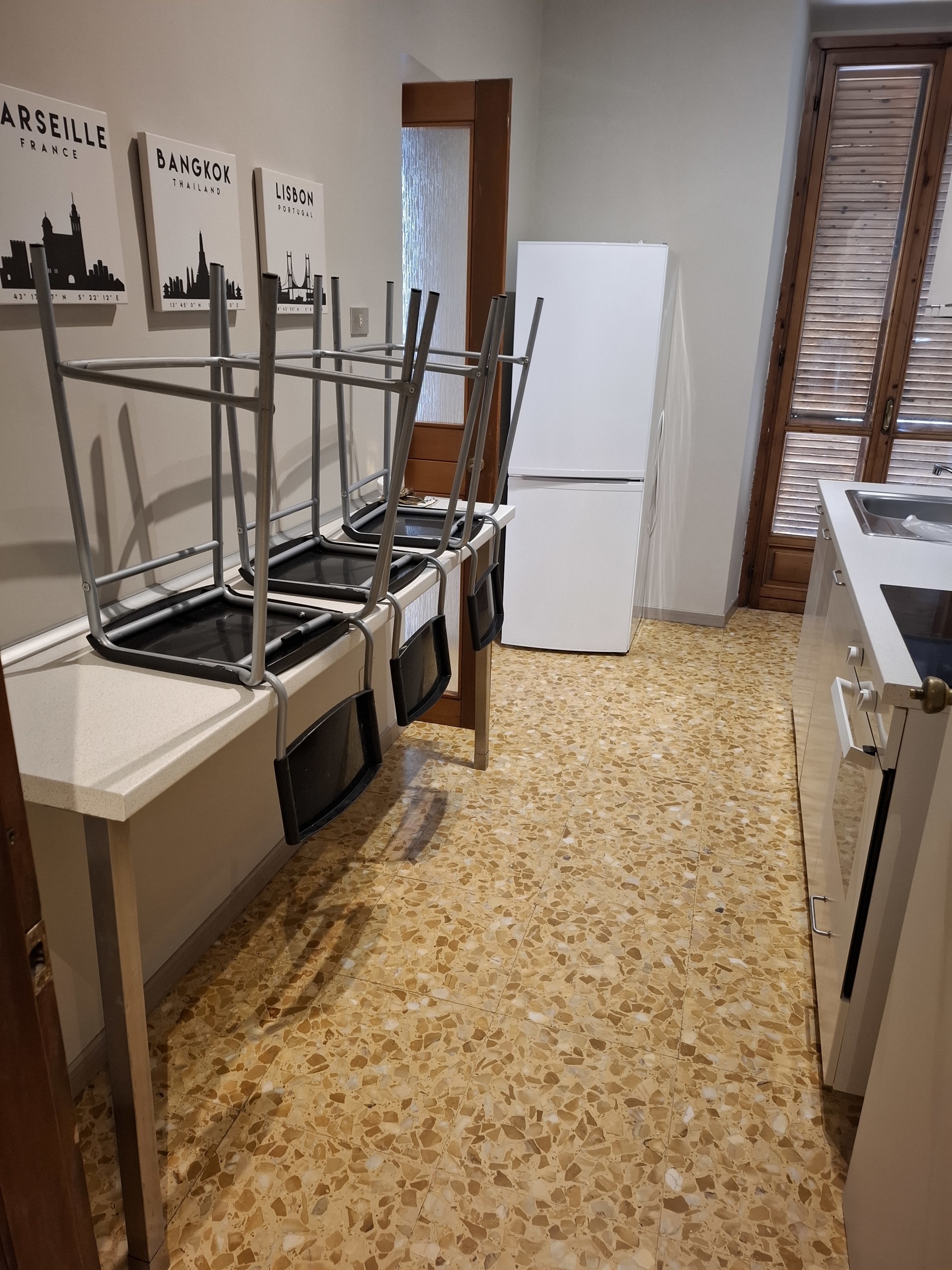 l'appartamento e' cosi' composto: ingresso, cucina abitabile attrezzata in comune con divanetti e tavolo, 4 camera da letto singole ( entrambe con letto ampio, armadio e scrivania), 2 servizi (uno con vasca e uno con doccia) e balconi.