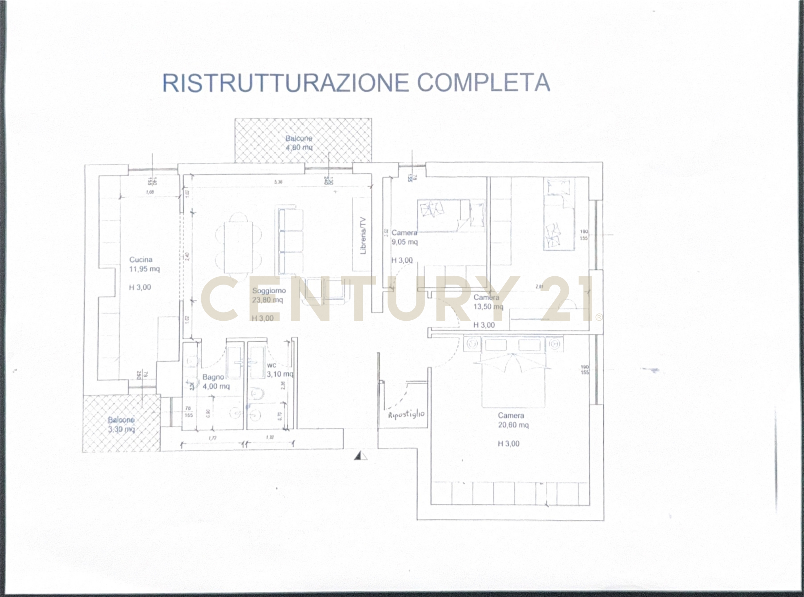 Proponiamo in vendita un immobile attualmente in fase di completa ristrutturazione, che si compone di ampio soggiorno con balcone, cucina abitabile, con balcone, separata da ampia porta scorrevole a doppia anta, disimpegno notte, tre camere da letto, due bagni e ripostiglio.