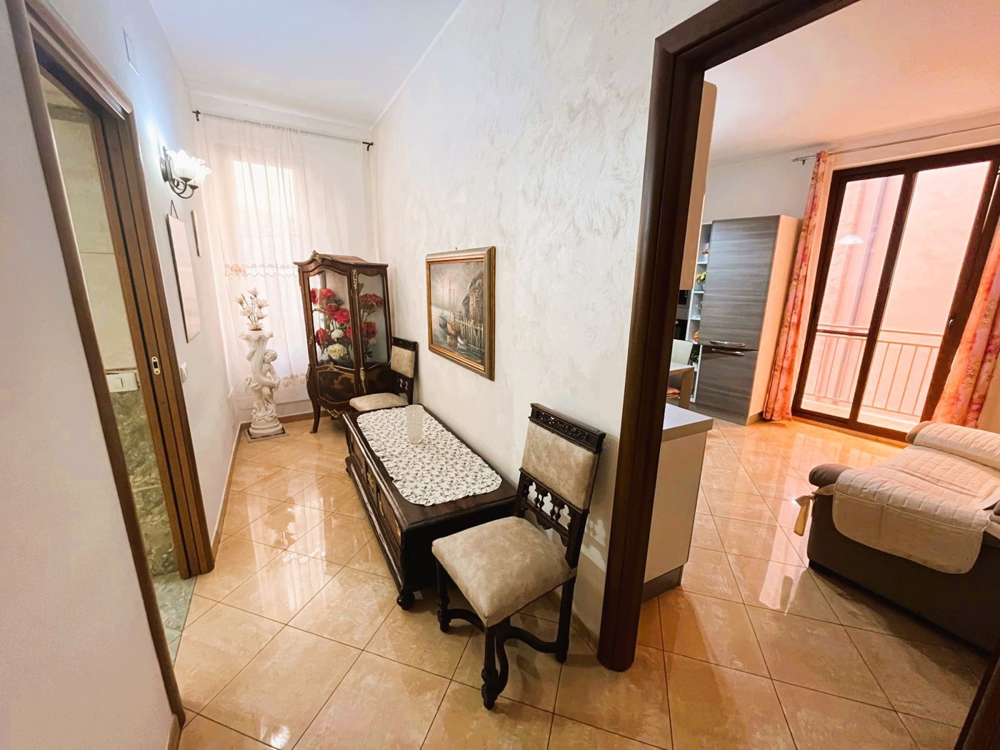 L'immobile cos diviso: 1° piano: Appartamento totalmente ristrutturato e rifinito con cura composto da cucina abitabile, soggiorno, camera da letto matrimoniale, cameretta e servizio.