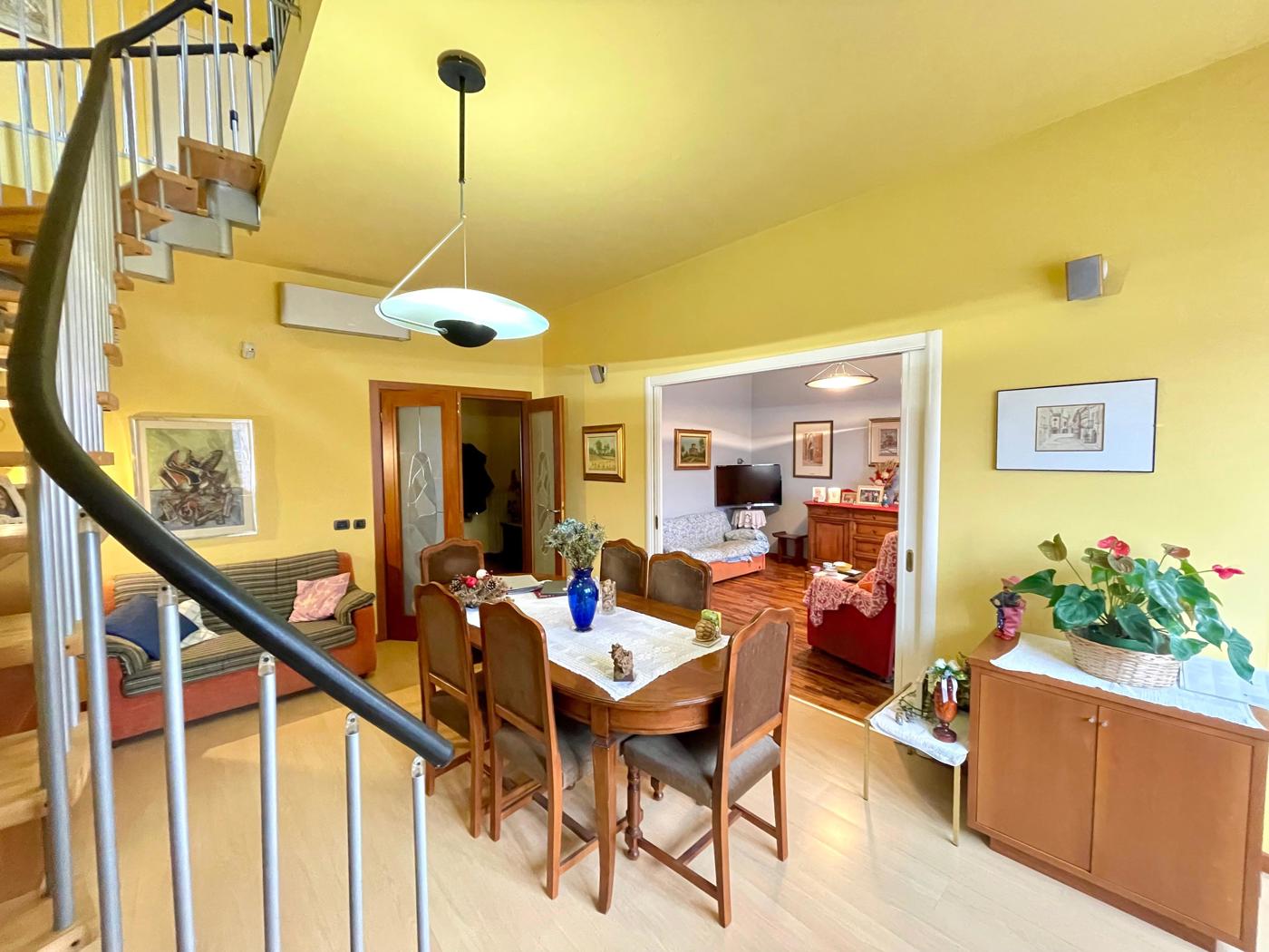 L'abitazione si sviluppa su due livelli di cui una parta mansardata e presenta generose dimensioni oltre agli ambienti molto luminosi.