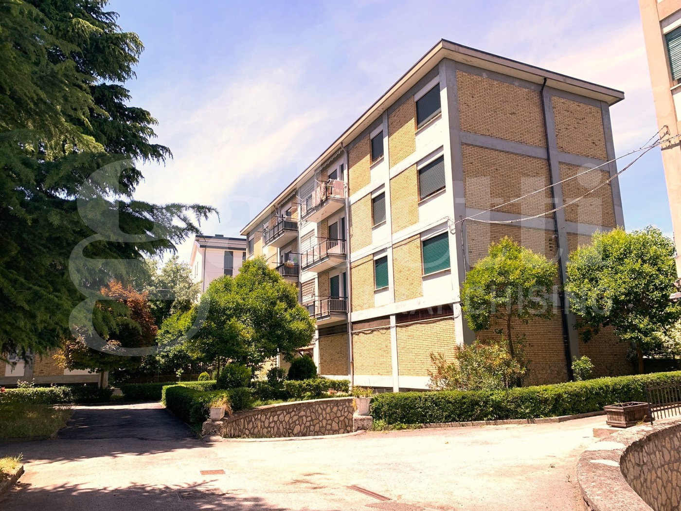 L'abitazione parte di un complesso di palazzine di soli sei appartamenti ciascuna con un'enorme corte condominiale piantumata e ben tenuta.