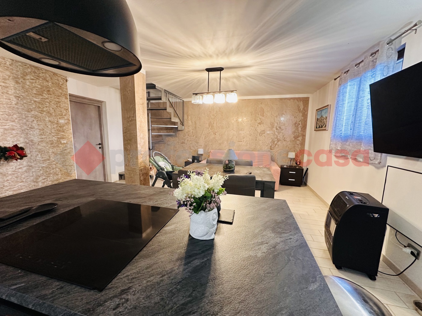 In vendita appartamento posto al piano primo e terra, composto da ampio soggiorno con balcone, cucina living open space con uscita sul giardino, camera matrimoniale con bagno in camera e cabina armadio, cameretta, stanza hobby, bagno, lavanderia.
