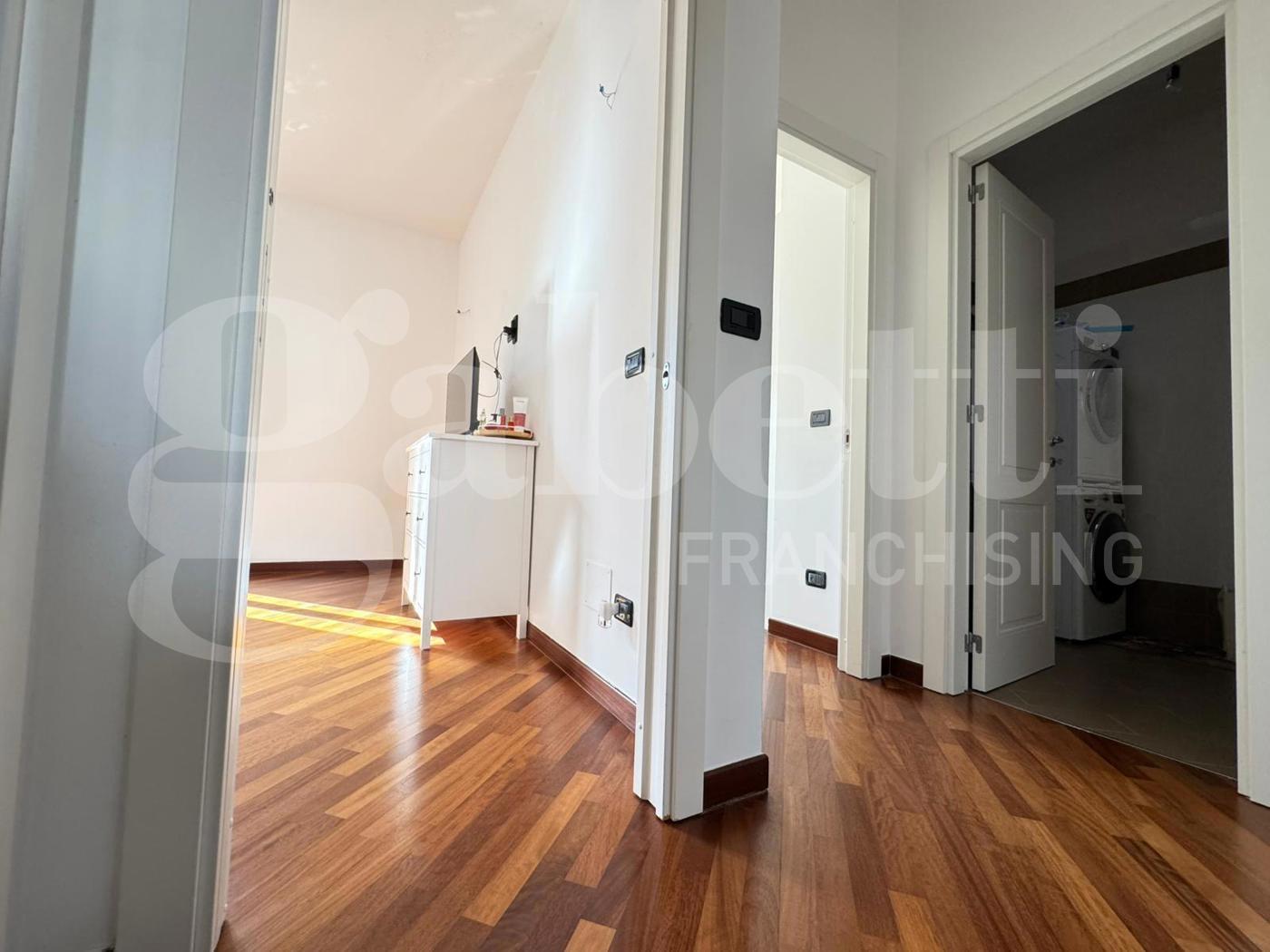 Lappartamento impreziosito da dettagli di pregio e tecnologie avanzate che ne aumentano il comfort e lefficienza: pavimentazione in parquet, calda ed elegante; riscaldamento a pavimento, per un comfort uniforme in tutte le stagioni; infissi a taglio termico, che garantiscono isolamento termo-acustico; tapparelle motorizzate, pratiche e di design; impianto di climatizzazione, per una gestione ottimale della temperatura; cancelletti di protezione a scomparsa, per sicurezza senza rinunciare allestetica; impianto solare termico, per un risparmio energetico nel riscaldamento dell'acqua sanitaria.