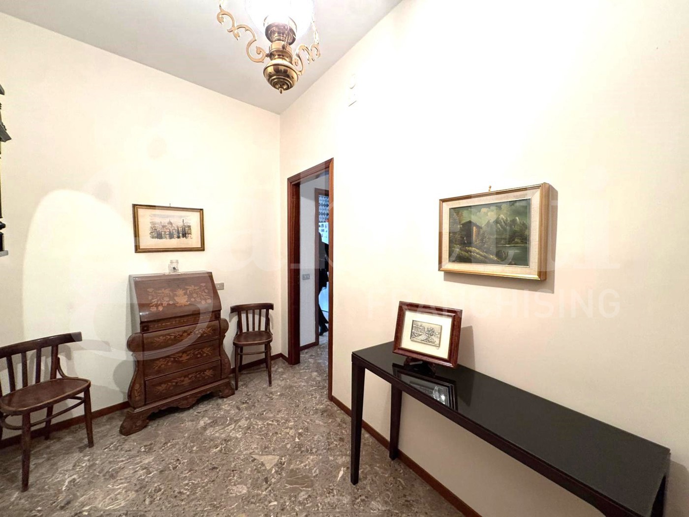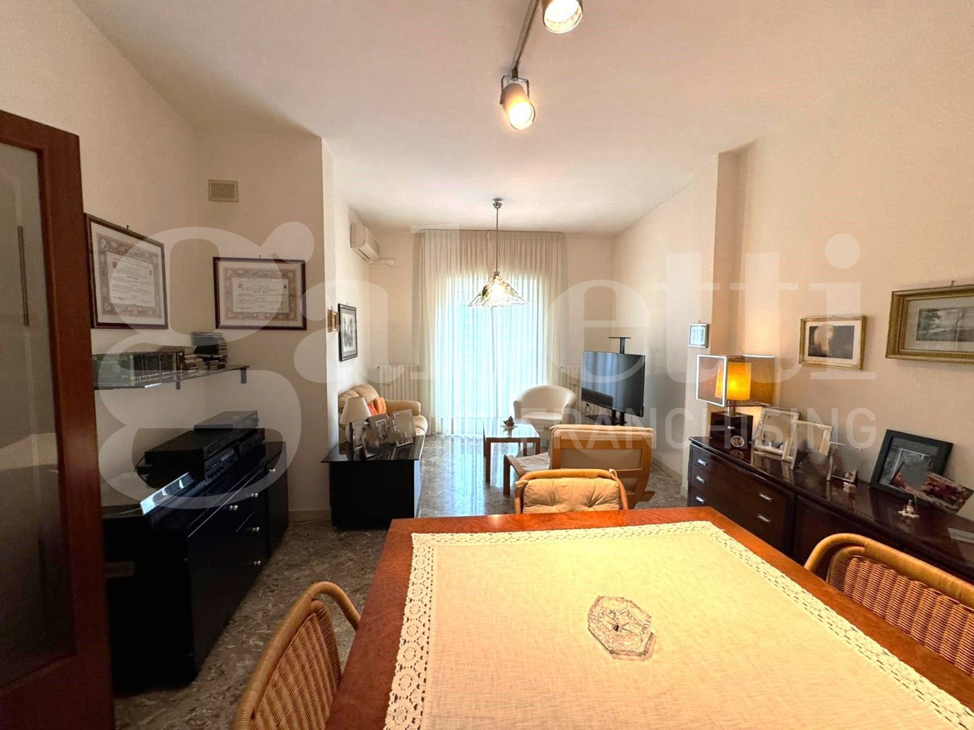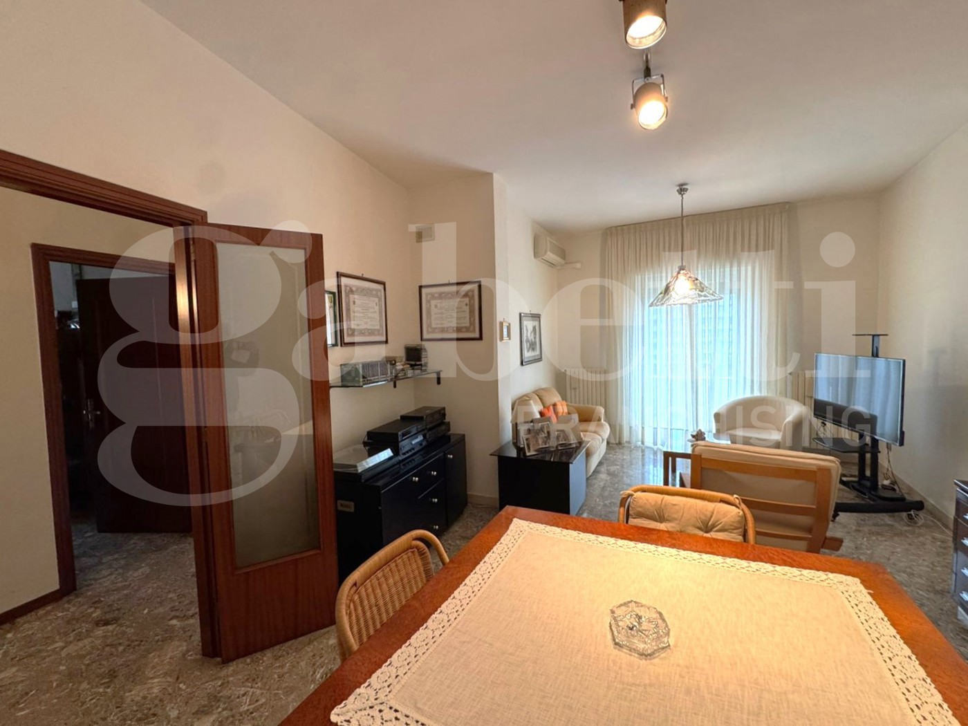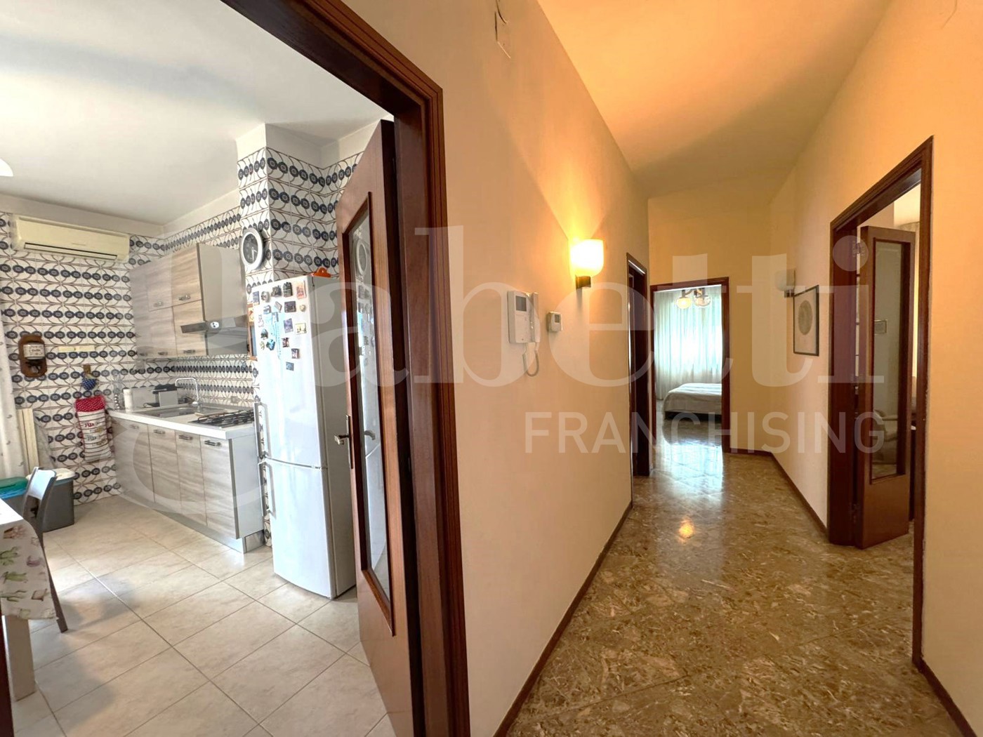 Limmobile accoglie con un comodo ingresso che introduce a un ampio salone doppio, perfetto per momenti di convivialit e relax.