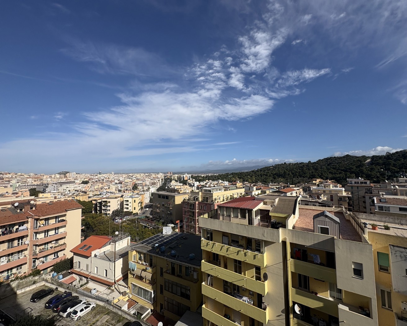 La zona giorno composta da un doppio salone luminoso e ben distribuito, con accesso diretto a una veranda panoramica con piacevole vista sulla citt e Monte Urpinu, ideale per momenti di relax allaria aperta.