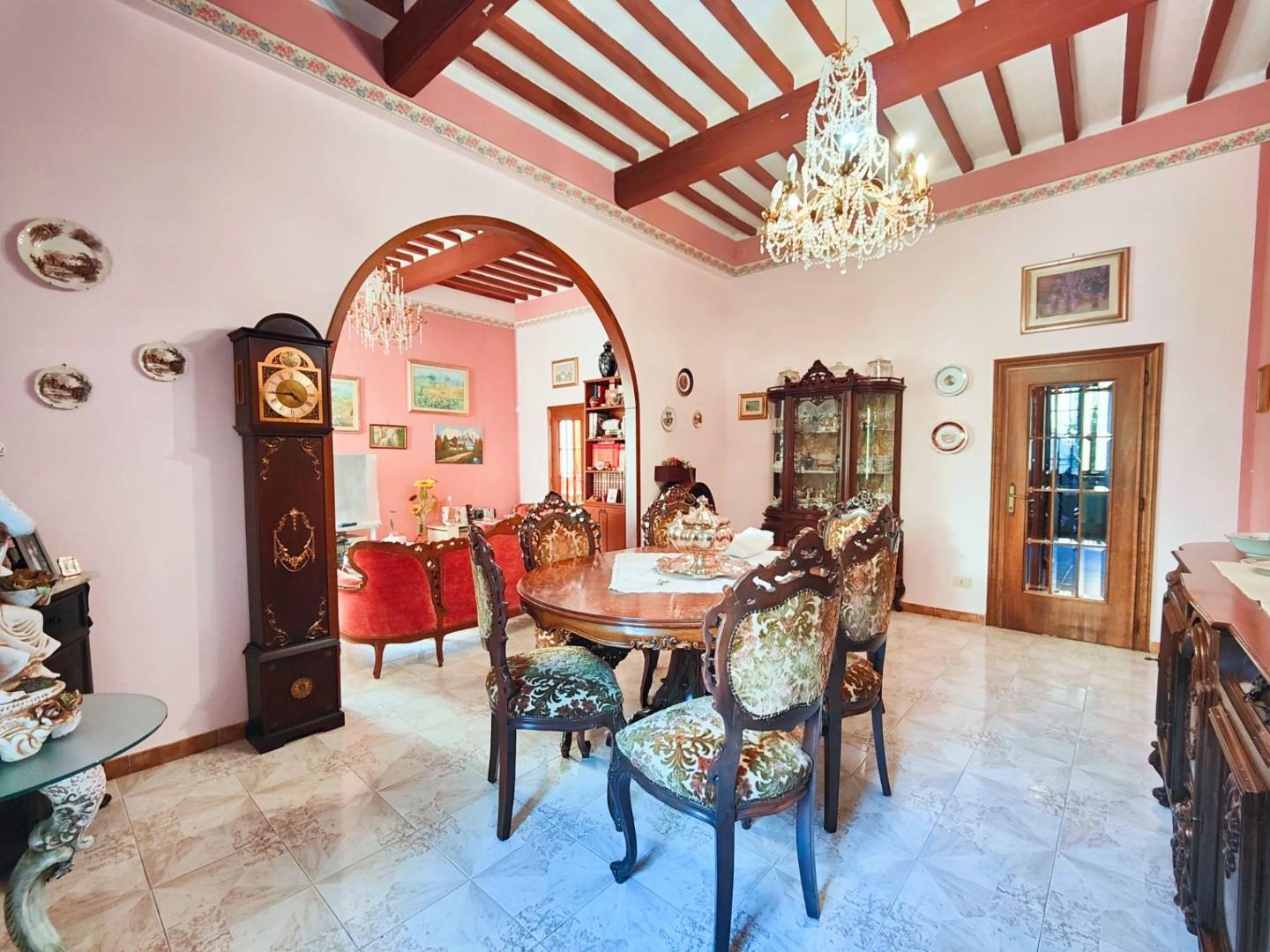 Da questo spazio si apre un luminoso doppio soggiorno, seguito da una cucina abitabile impreziosita da un caratteristico camino e dotata di un pratico ripostiglio.