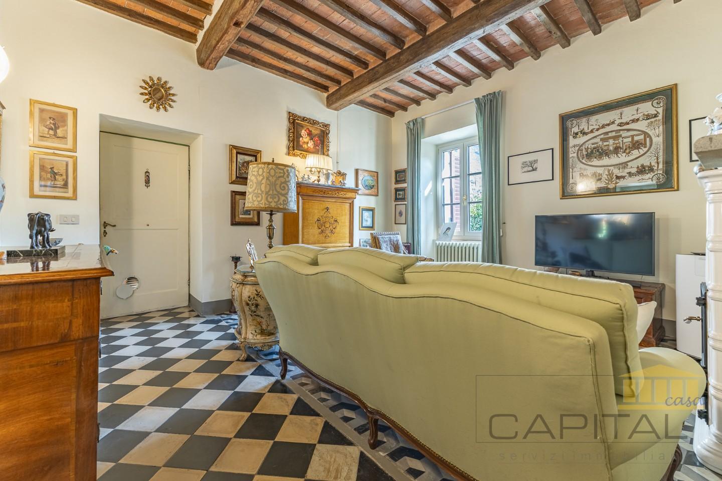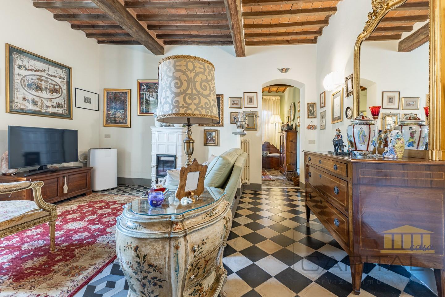 Le caratteristiche storiche che compongono questa proprietà, vedono soffitti in travi in legno e mezzane a vista, cementine originali al pavimento e infissi in legno completamente nuovi e con vetro termico, il tutto pronto per accogliervi con lo stile tipico toscano.