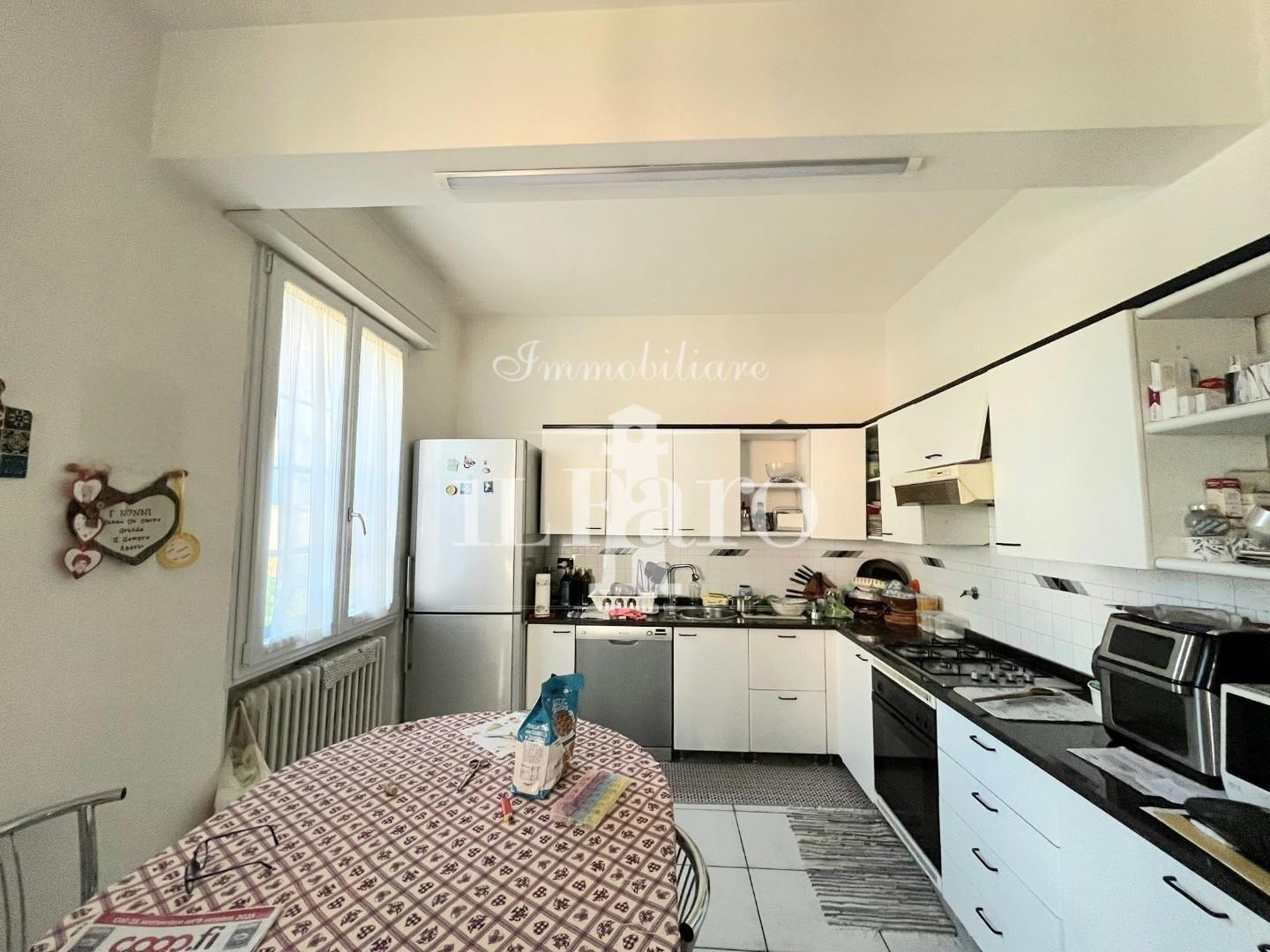 L'abitazione è così composta: Entrando ci accoglie la zona giorno molto grande e luminosa, proseguendo troviamo la cucina abitabile con accesso al balcone tergale in parte verandato e attrezzato a lavanderia esterna.