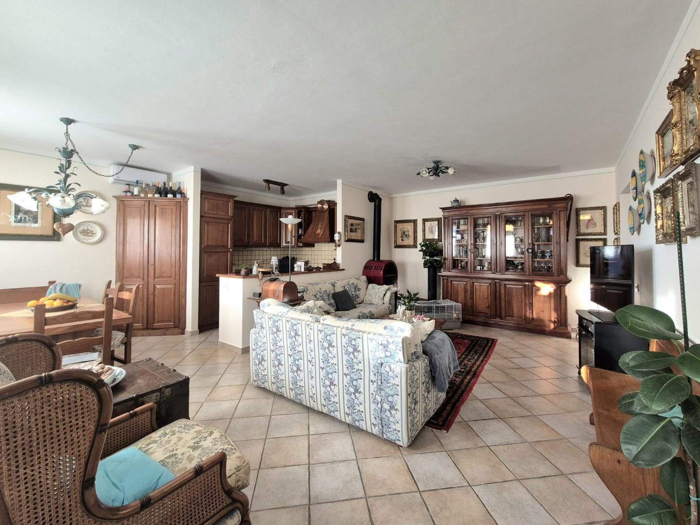 Perfette le condizioni di manutenzione: infissi in pvc effetto legno con doppi vetri, zanzariere, aria condizionata e pavimento in gress porcellanato in tutti gli ambienti.