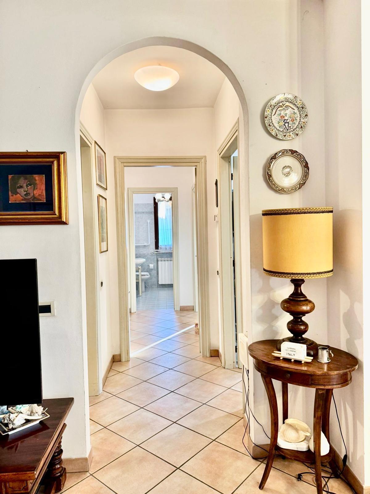 La comoda metratura, ideale per ospitare anche una famiglia numerosa, è così distribuita: al piano d'ingresso troviamo un ampio soggiorno di quasi 40 mq con doppia finestra ed accesso a bella terrazza di 12 mq, disimpegno, cucina abitabile e bagno con antibagno a completare la zona giorno; camera matrimoniale e camera doppia, entrambe con accesso a seconda terrazza, e 2° bagno nel reparto notte; salendo in mansarda troviamo due camere e bagno.