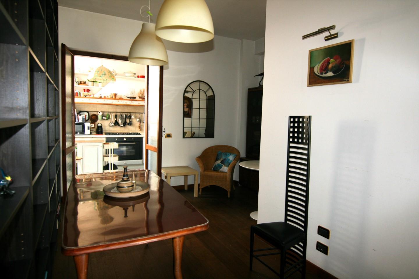 Girando a destra si passa in una piccola zona pranzo e da qui nella cucina abitabile provvista di altro balcone.