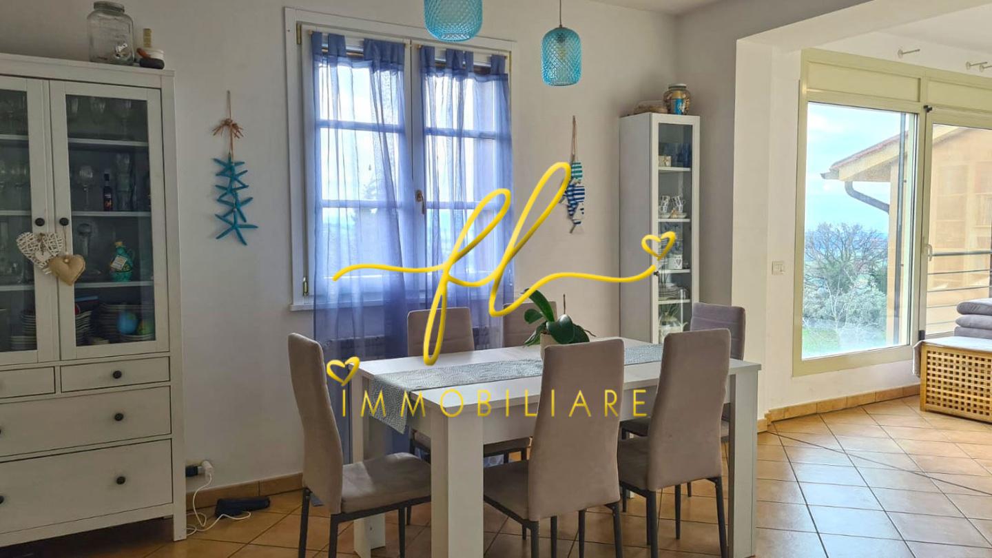 Limmobile, di 106 m complessivi, accoglie i suoi ospiti in un ampio open space dove il living e la zona pranzo si fondono armoniosamente, impreziositi da una grande vetrata che regala una meravigliosa vista sul verde e scorci di mare. La cucina abitabile è funzionale e perfetta per chi ama vivere la casa con gusto e convivialità. La zona notte, ben disimpegnata, comprende una camera matrimoniale, una camera doppia e un bagno finestrato curato nei dettagli.