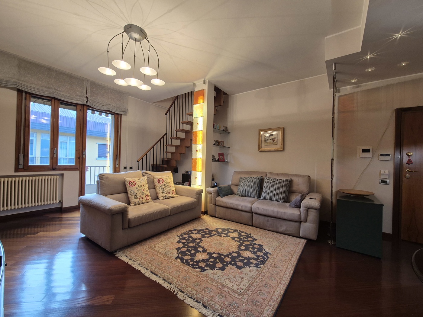Al piano superiore sottotetto abitabile open space con camino e cucina a vista, terza camera e terzo bagno.