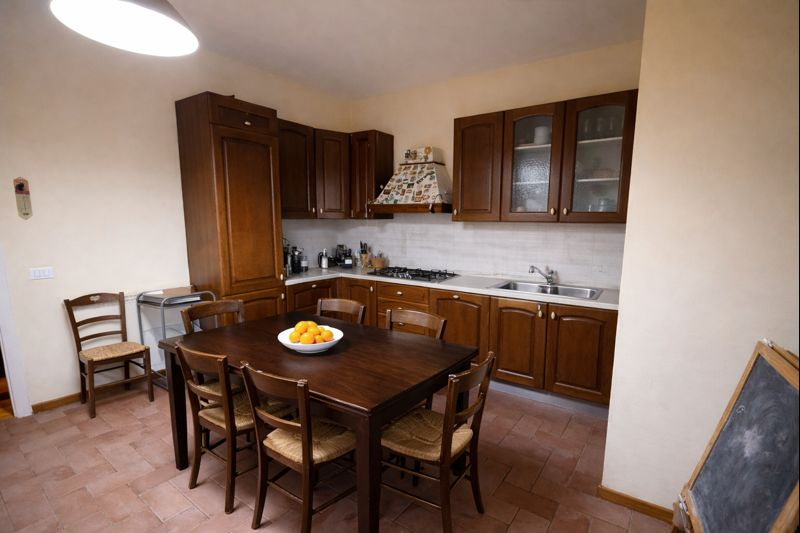 La cucina abitabile, comoda e funzionale, gode dellaccesso al balcone principale, ideale per momenti di relax o per la vita quotidiana.