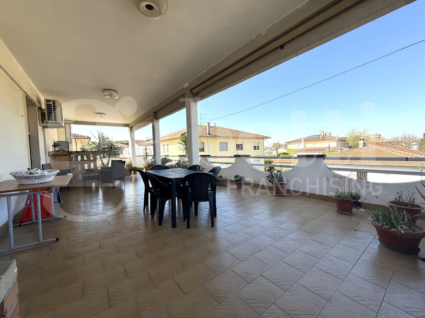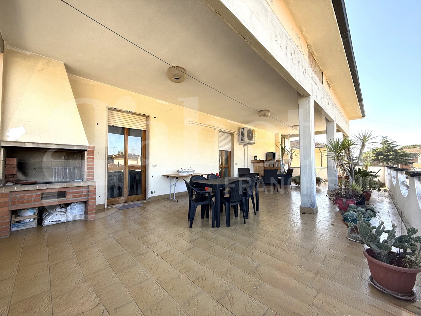 Dal portoncino d' entrata accediamo all' ingresso dove si affaccia la zona giorno con luminosa cucina abitabile ed accogliente e spazioso salone, che ha accesso diretto alla maestosa terrazza di circa 90mq con camino, utile per le tue cene in famiglia o con gli amici.
