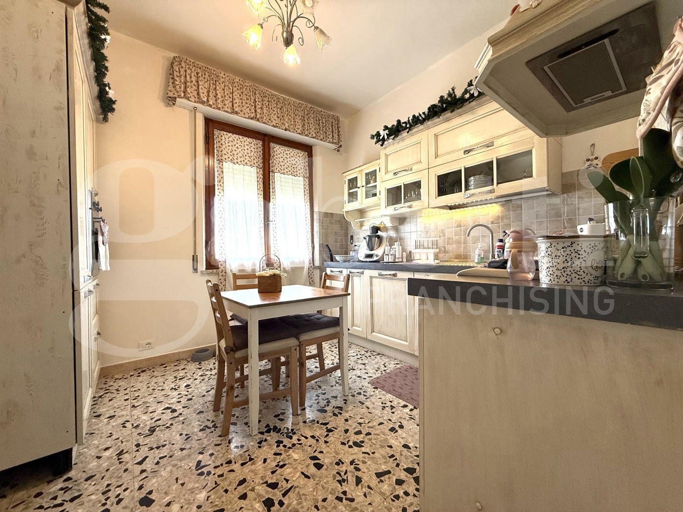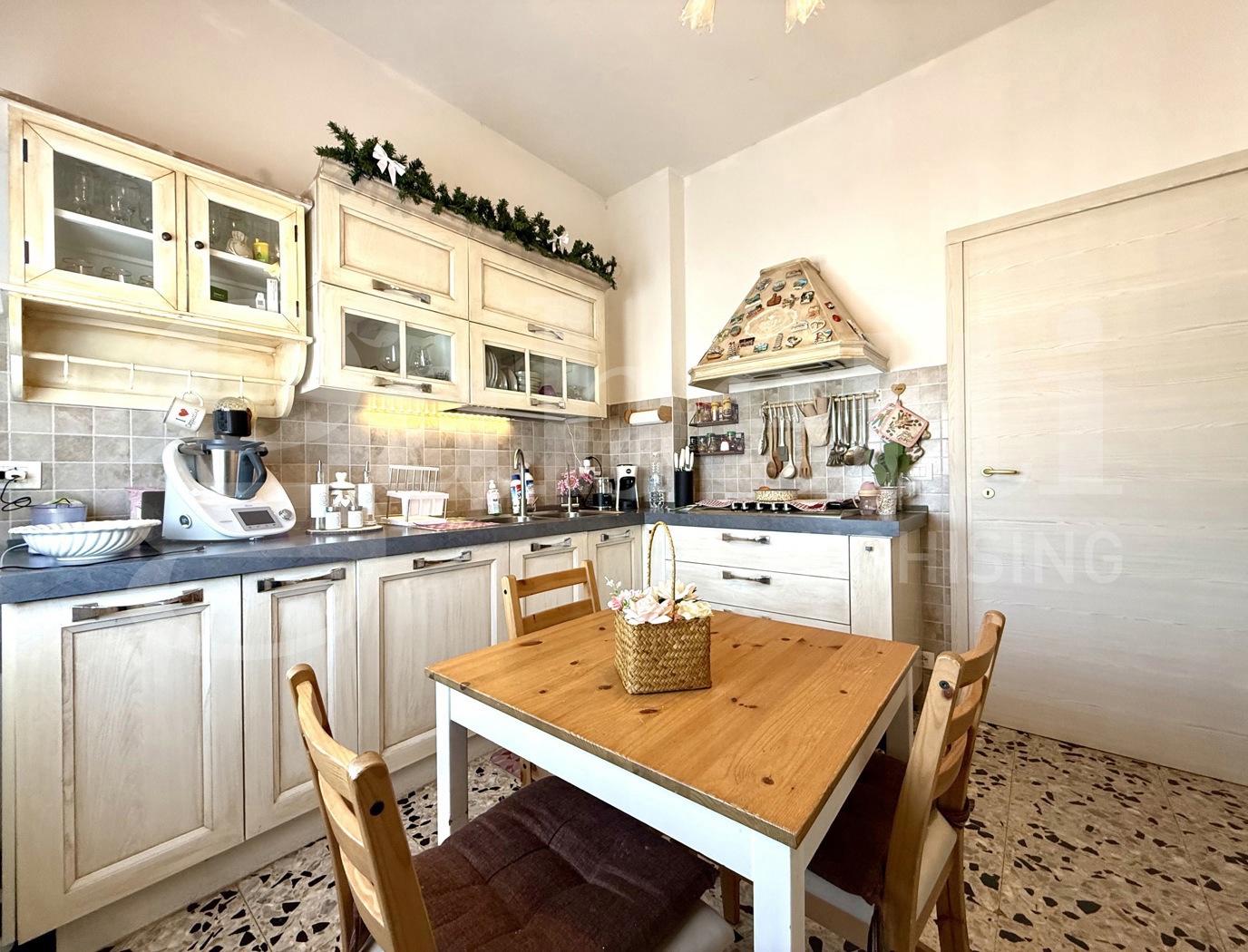 L'immobile dotato di infissi in legno con doppi vetri, avvolgibili, radiatori in ghisa, split, stufa a legna ed ampio ripostiglio ad uso lavanderia.