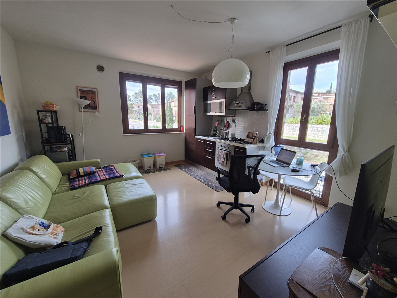 Ponte a Bozzone a soli 5 minuti dal Siena vendesi al primo piano piccolo condominio di recente costruzione appartamento di 55 metri quadrati commerciali composto da soggiorno con angolo cottura, disimpegno, ampia camera matrimoniale bagno.