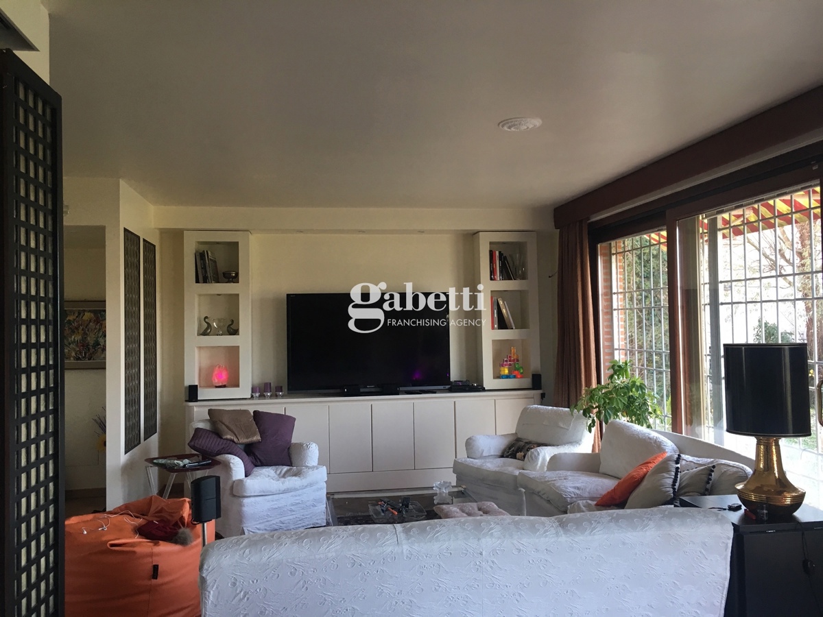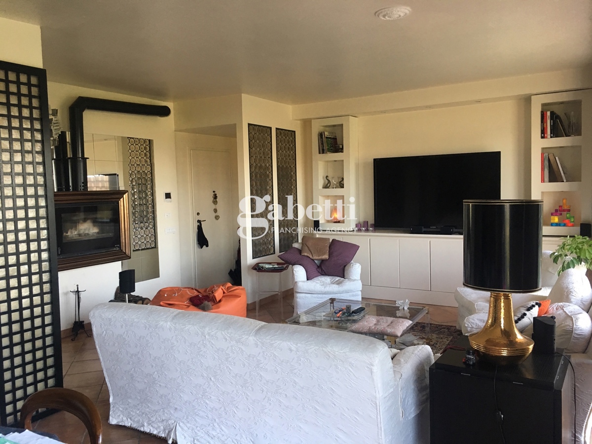 Appartamento al piano terra, libero su quattro lati, in ottime condizioni, composto da: ingresso su grande sala panoramica con caminetto, zona pranzo, cucina, una camera da letto matrimoniale con bagno privato e cabina armadio, due camere da letto singole, secondo bagno.