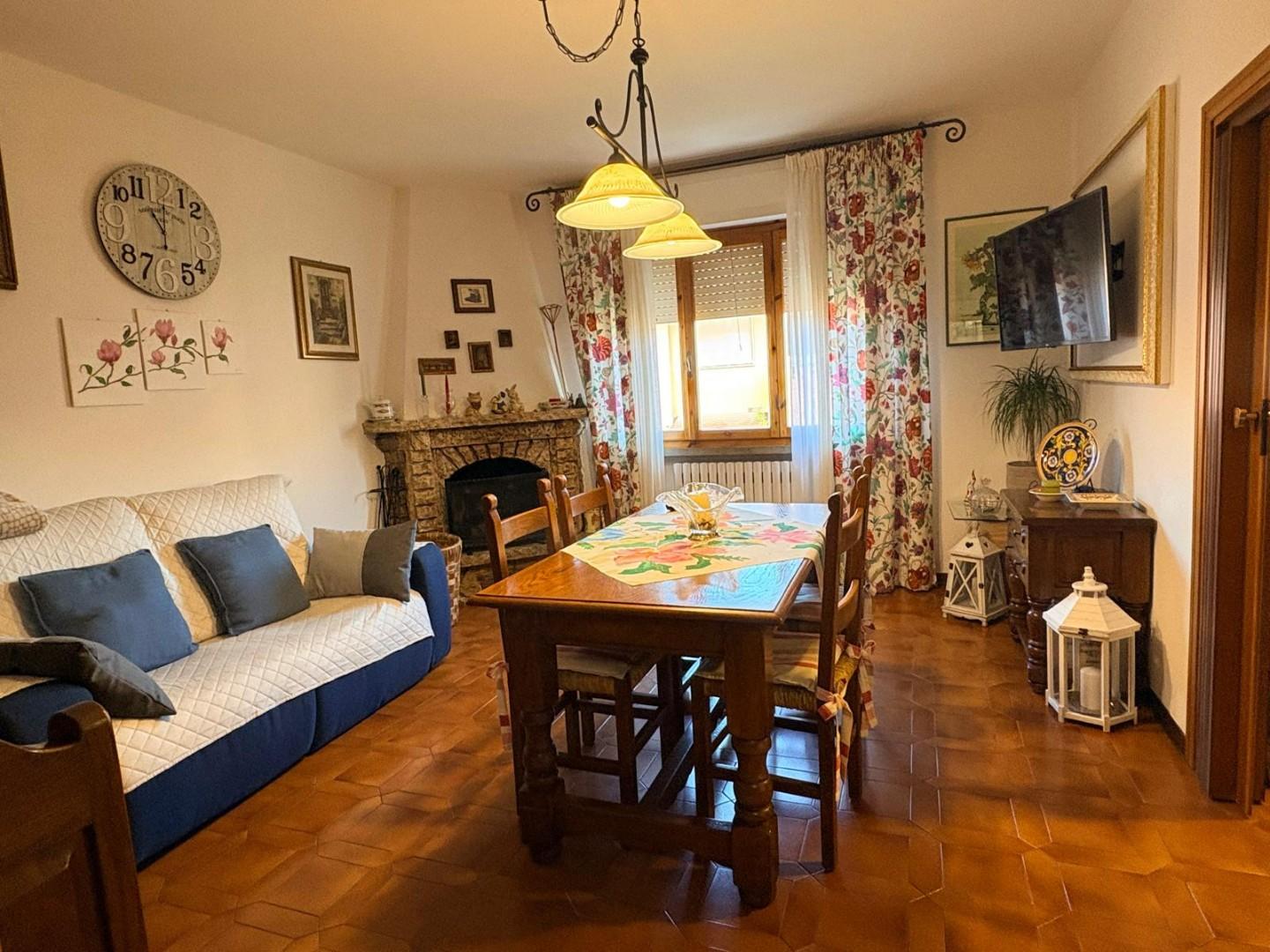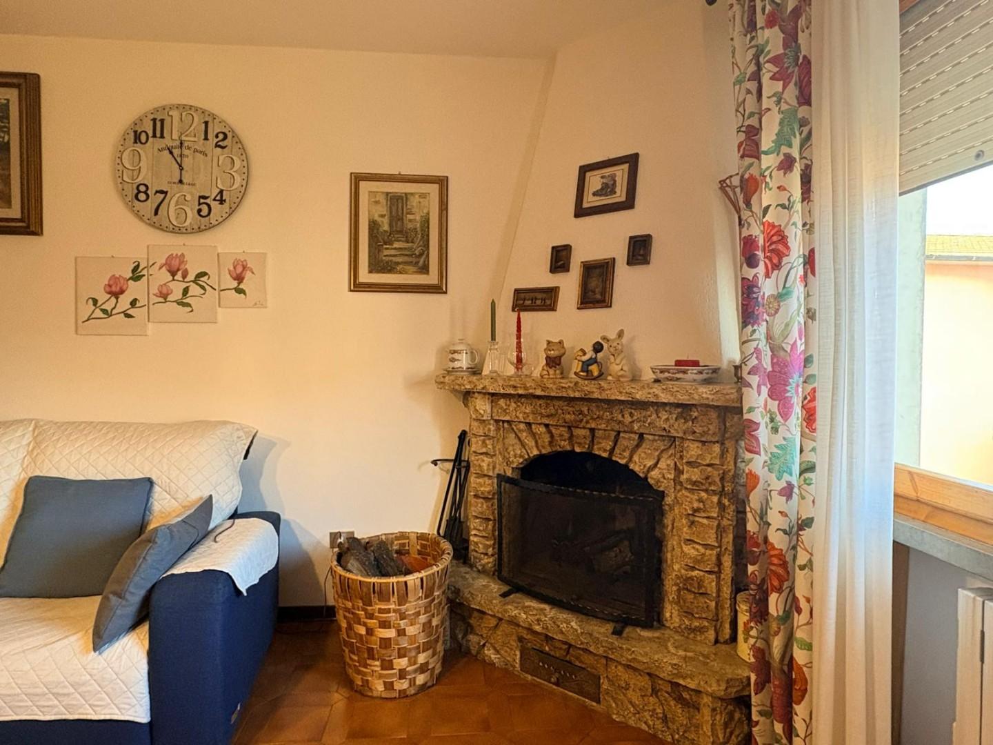 Lingresso conduce a un accogliente soggiorno impreziosito dal caminetto, perfetto per creare unatmosfera calda e conviviale nelle serate invernali, affiancato da un pratico cucinotto funzionale e riservato.