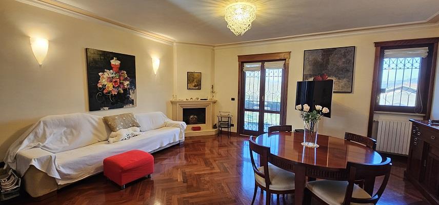 Il soggiorno e la sala da pranzo, dotati di un accogliente camino, si affacciano su una spaziosa balconata di circa 20 mq, ideale per godere di momenti di relax all’aria aperta.