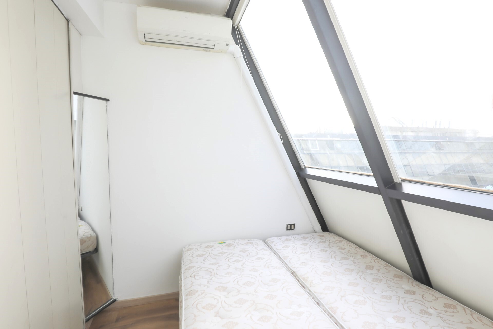 L'appartamento è suddiviso in una zona giorno con cucina a vista, una zona notte con letto ed armadiatura, un bagno completo con ampio box doccia ed il TERRAZZINO perimetrale continuo, comodamente accessibile attraverso gli originali serramenti full-height.