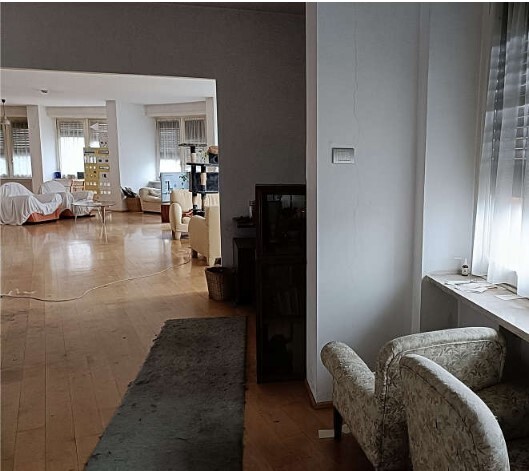 Appartamento al piano quinto composto di doppi ingressi, ampio salone unito ad una camera da letto con annesso servizio igienico, locale guardaroba, altra camera da letto-studio, secondo bagno e disimpegno; vano cantina al piano interrato; autorimessa privata al piano seminterrato.