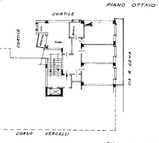 Piena proprietà del seguente immobile sito in Torino (To) Corso Vercelli n°254, al piano ottavo (9° fuori terra) di fabbricato civile: alloggio composto di tre camere, soggiorno, cucinotta, veranda e servizi.