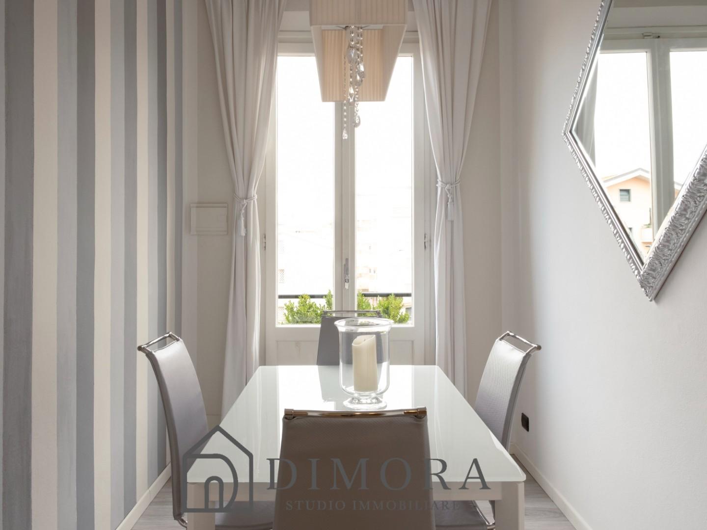 L'appartamento è così composto: disimpegno d'ingresso, luminosa sala da pranzo con balcone, angolo cottura, ampio soggiorno, bagno finestrato con doccia e due grandi camere matrimoniali.