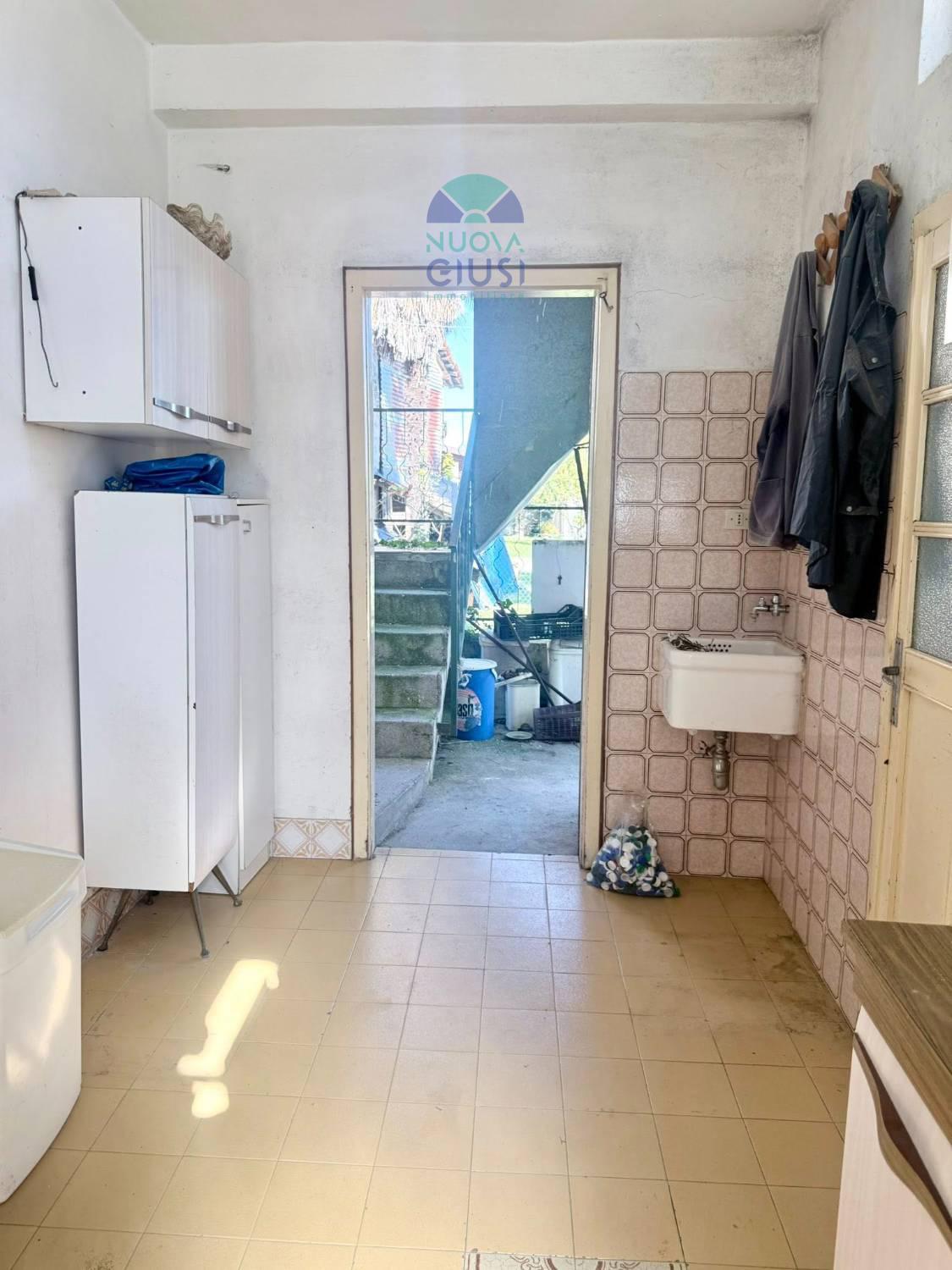 n zona tranquilla immersa nel verde, luminosa casetta accostata da riadattare parzialmente, svolta su due livelli, cosi composta: - al piano terra da soggiorno, cucina, stanza (con possibilit ampliamento zona giorno), veranda, ripostiglio, scoperto, tettoia e garage; - al primo paino da due grandi camere, wc, bagno, soffitta e ampia terrazza.